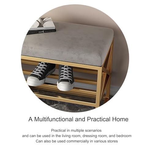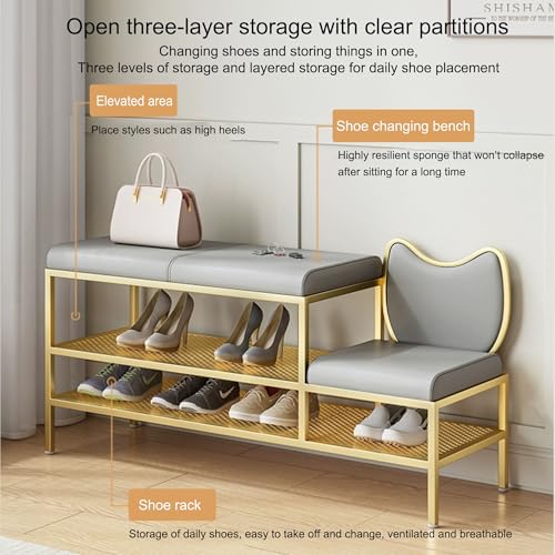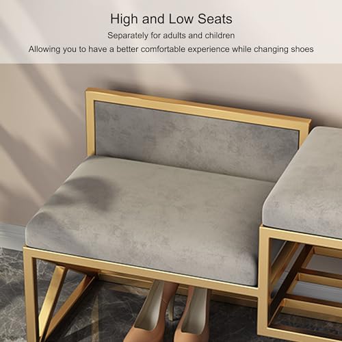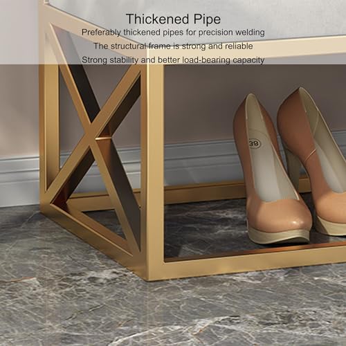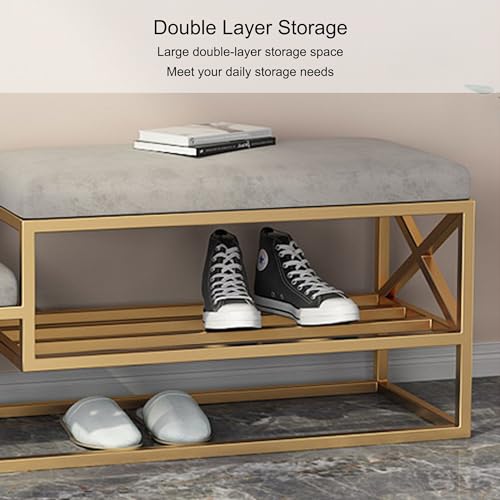 Entryway Shoe Storage Bench Shoe Rack Organizer Ottoman Bench Shoe Cabinet Bedroom End of Bed Bench Metal Frame for Front Door Entrance Living Room Bedroom Closet(Gold/Grey,120cm)