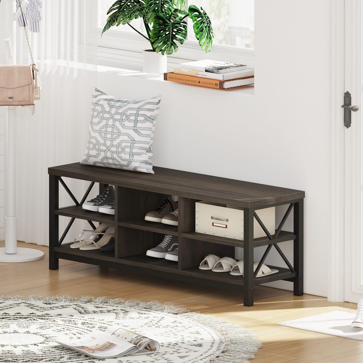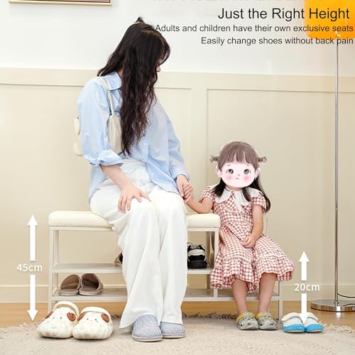 Shoe Rack Bench Storage Shelf with Cushion Upholstered Padded Seat, Shoe Organizer, Ideal for Entryway Bedroom Living Room Hallway Garage Mud Room, Holds Up to 350 lb