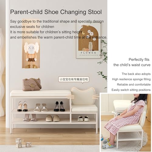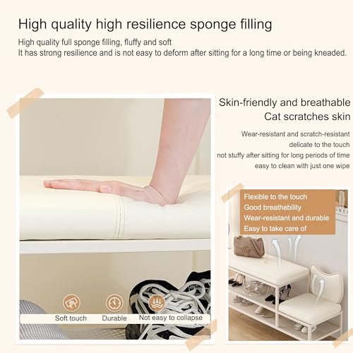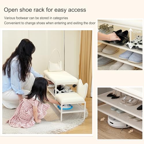 Entryway Shoe Storage Bench Rack Shoe Organizer Ottoman Bench for Front Door Entrance Shoe Cabinet Bedroom End of Bed Bench with Padded Seat for Entryway Balcony Living Room Foyer(Cream white,100cm/39