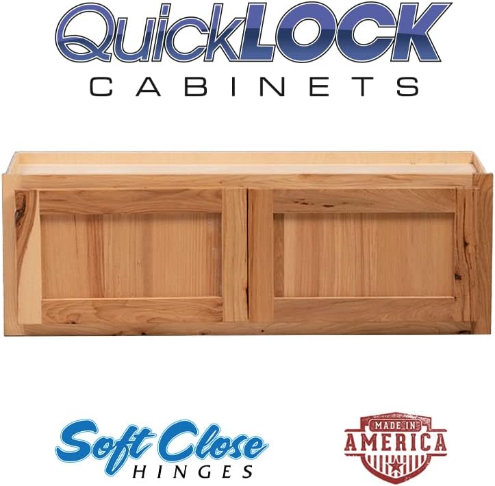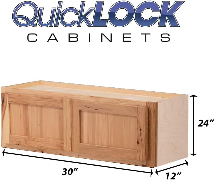 Quicklock RTA (Ready-to-Assemble) 42" Tall Wall Kitchen Cabinets - Shaker Style | 100% Hardwood | Made in America | Soft Close Hardware (Rustic Hickory, 12" D x 30" W x 24" H)