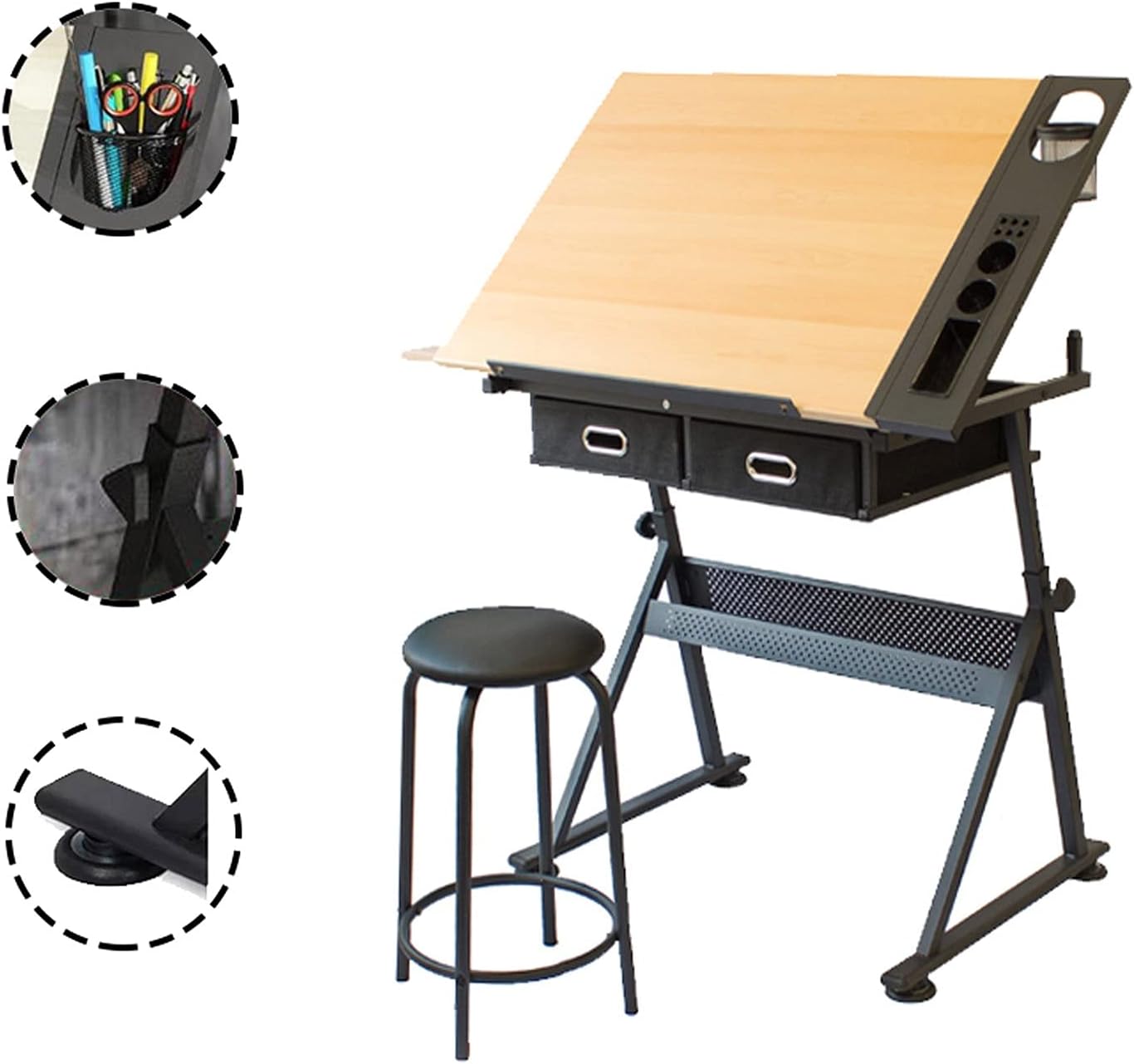 Drafting Desk, Painting Table Children And Adults Liftable Calligraphy And Painting Drawing Table Double Shelf Drafting Tables for Art (Color : Natural, Size : 96X60X68CM) (Natural 96X60X68CM) (Natur