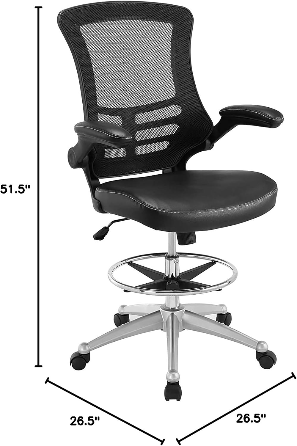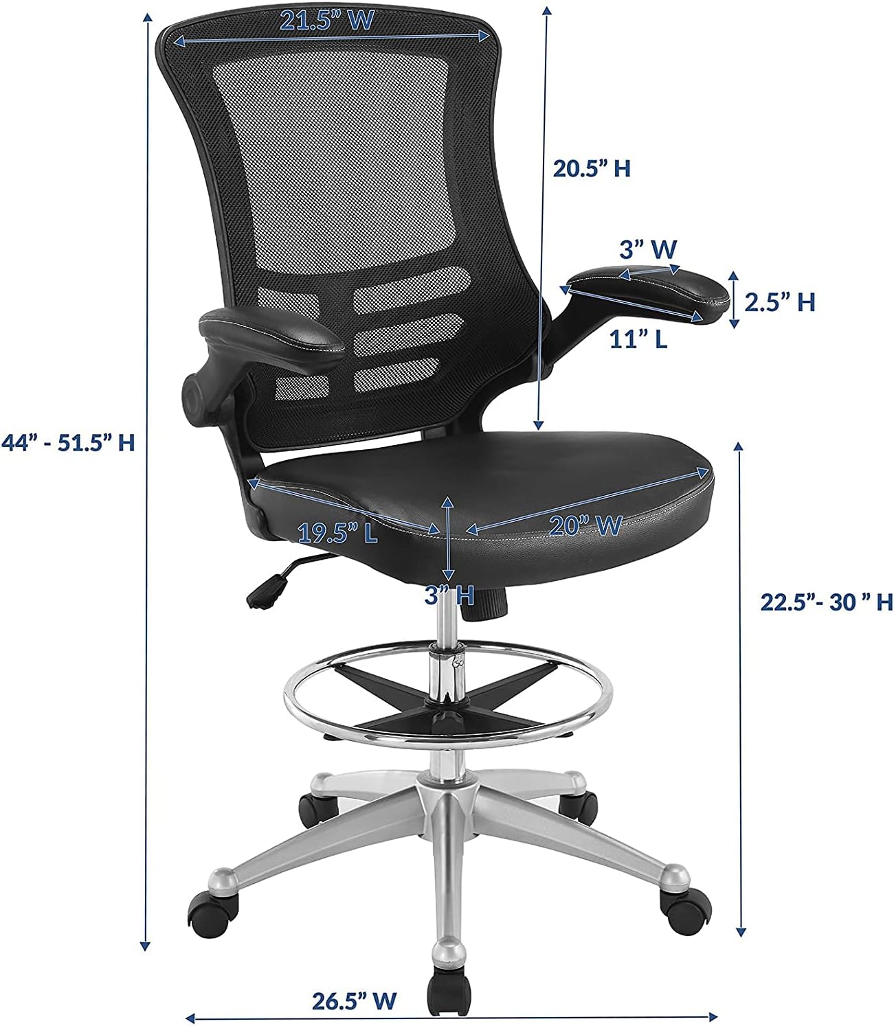 Attainment Vinyl Drafting Chair - Drafting Stool with Flip-up Arm in Black Comfortable and Ergonomic Support 26.5" D X 26.5" W X 51.5" H