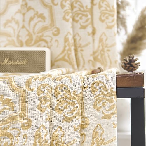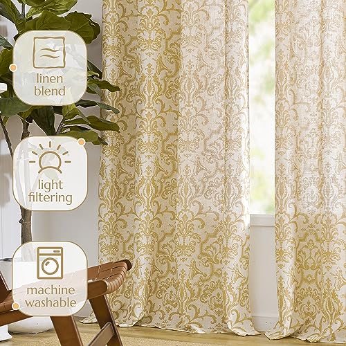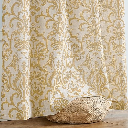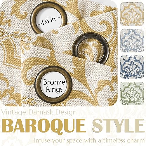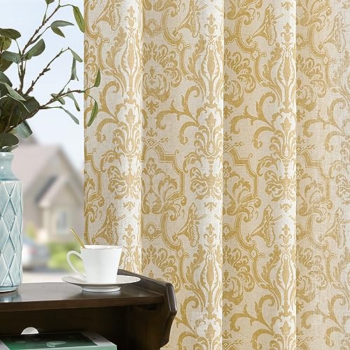 jinchan Linen Curtains for Living Room Sage Green Damask Patterned Curtains 96 Inches Long for Bedroom Light Filtering Vintage Curtains Baroque Style Drapes Grommet Window Treatments 2 Panels Set