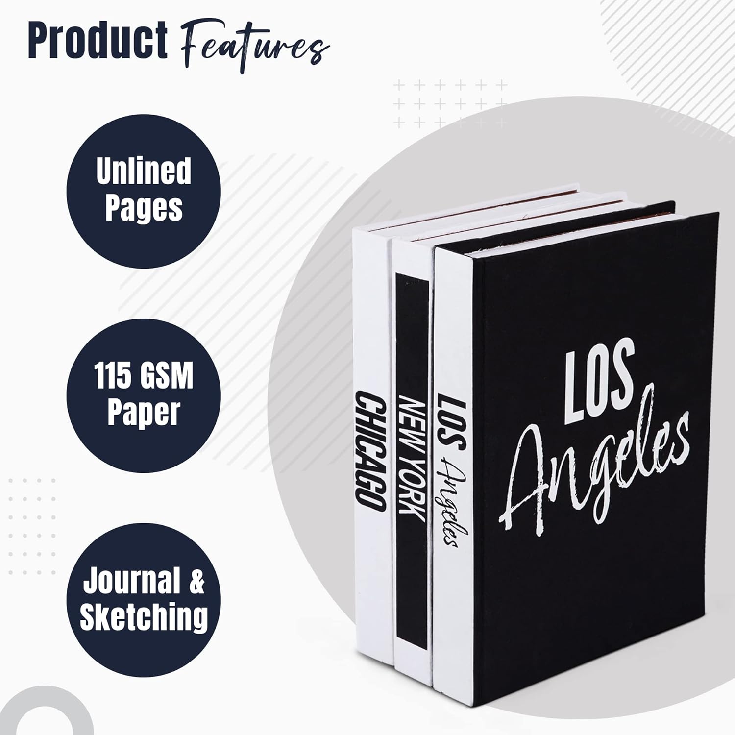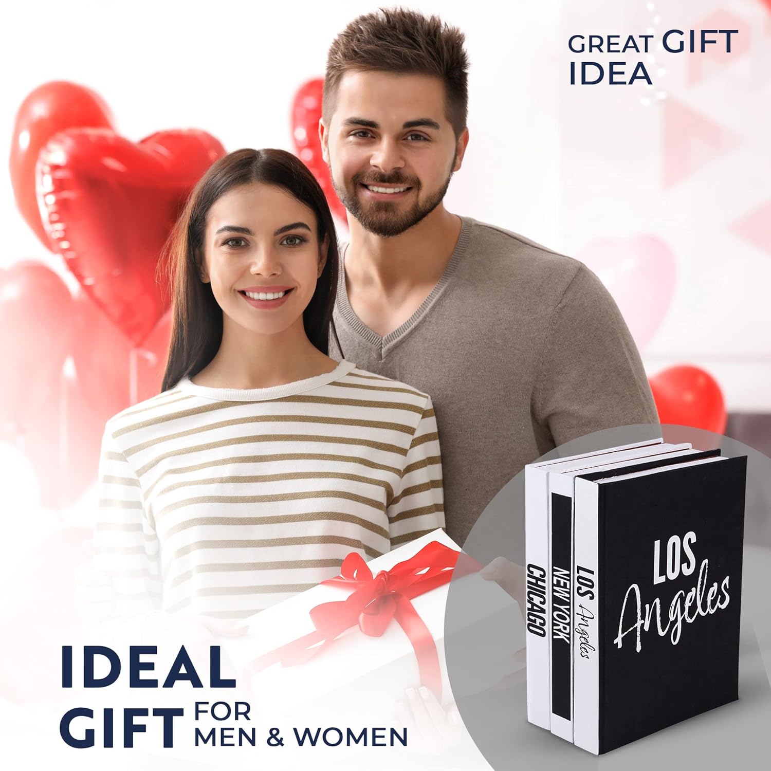 Set of 3 Decorative Books for Home Decor –New York, Chicago, Los Angeles Hardcover Journal w/ 160 Blank Unlined Pages Per Book - Designer Books for Coffee Table –Stackable Faux Books
