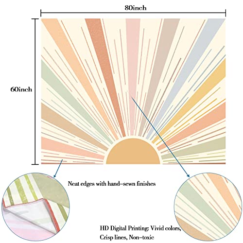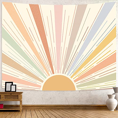 Kanuyee Boho Sun Tapestry Wall Hanging, Retro 70s Abstract Striped Aesthetic Sunrise Vintage Tapestries for Bedroom Living Room 44×60 inch