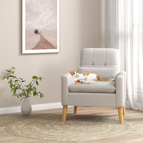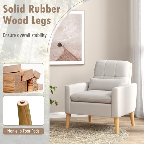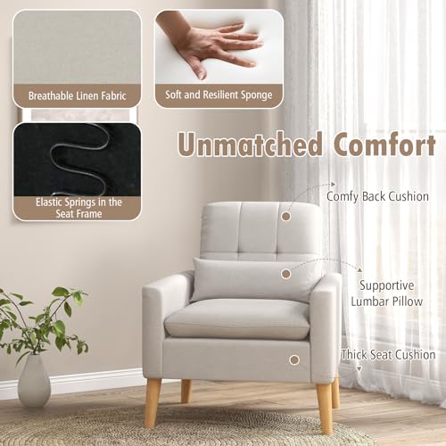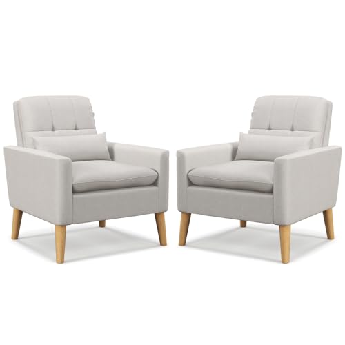 Giantex Modern Accent Chair Set of 2, Mid-century Linen Fabric Armchair w/Lumbar Pillow, Back & Seat Cushion, Comfy Single Sofa Chair with Rubber Wood Legs for Living Room, Bedroom, Reading Room