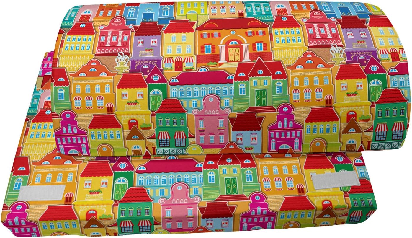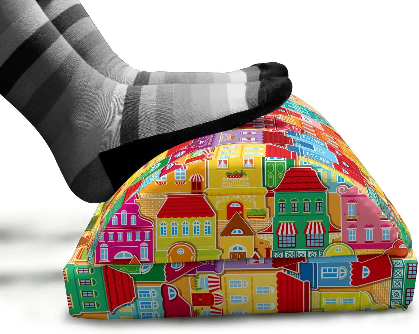 Ambesonne Cityscape Cartoons Foot Rest, European Architecture Art Houses with Pillars Fountains Urban View, Non-Slip Backing Adjustable Ergonomic Memory Foam Leg Support for Office, Multicolor