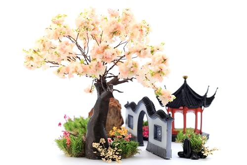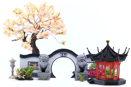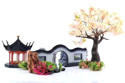 Mini Chinese Suzhou Garden - Paludarium Decor, Zen Garden Kit, Spider Tank Decorations, Miniature House kit, Dollhouse Accessories, Fairy Garden Accessories, Terrarium Decor (White Plum Tree Theme)
