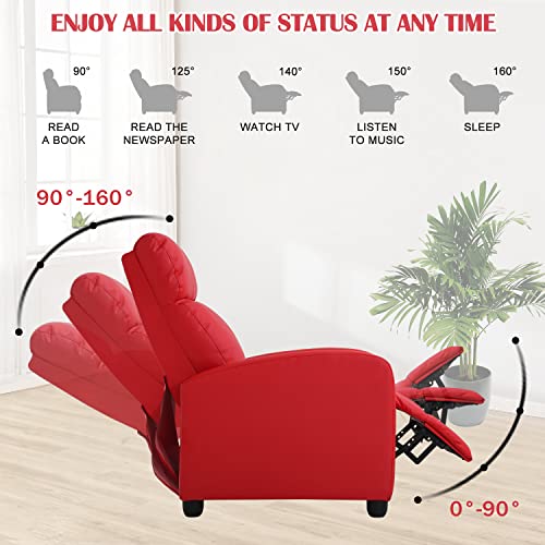 Living Room Recliner Chair Modern Reclining Easy Lounge Winback Single Sofa Reading Chair PU Leather Home Theater Seating Adjustable Accent Armchair w/Thick Seat Cushion & Backrest, Black