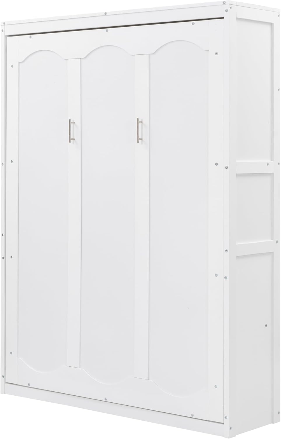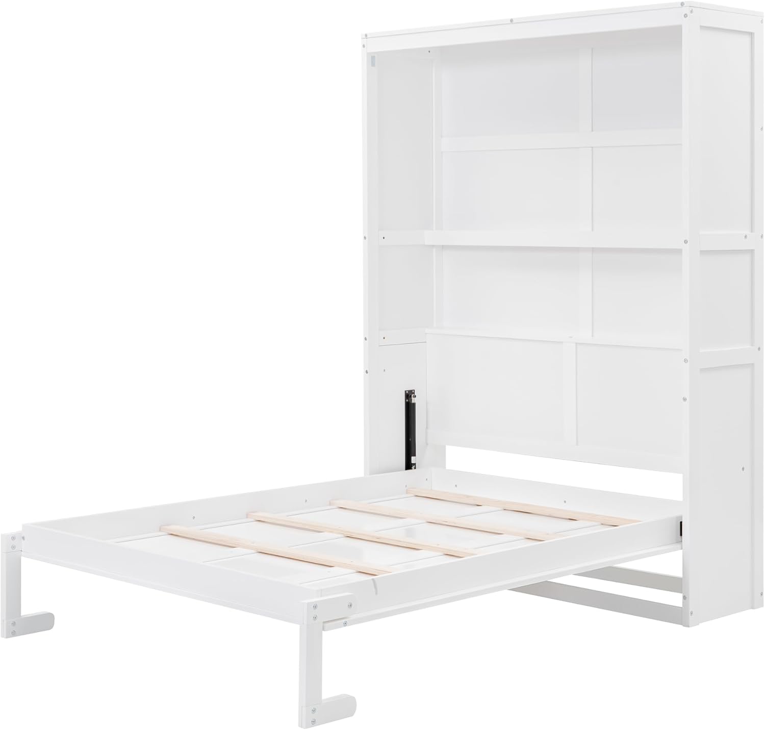 Merax Full Size Wood Modern Murphy Bed, Wall Bed with Shelves, Foldable Platform Bed Folded into Cabinet, Space-Saving Design Bed for Guest Room, Home and Office, White