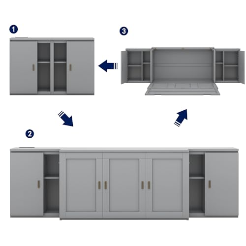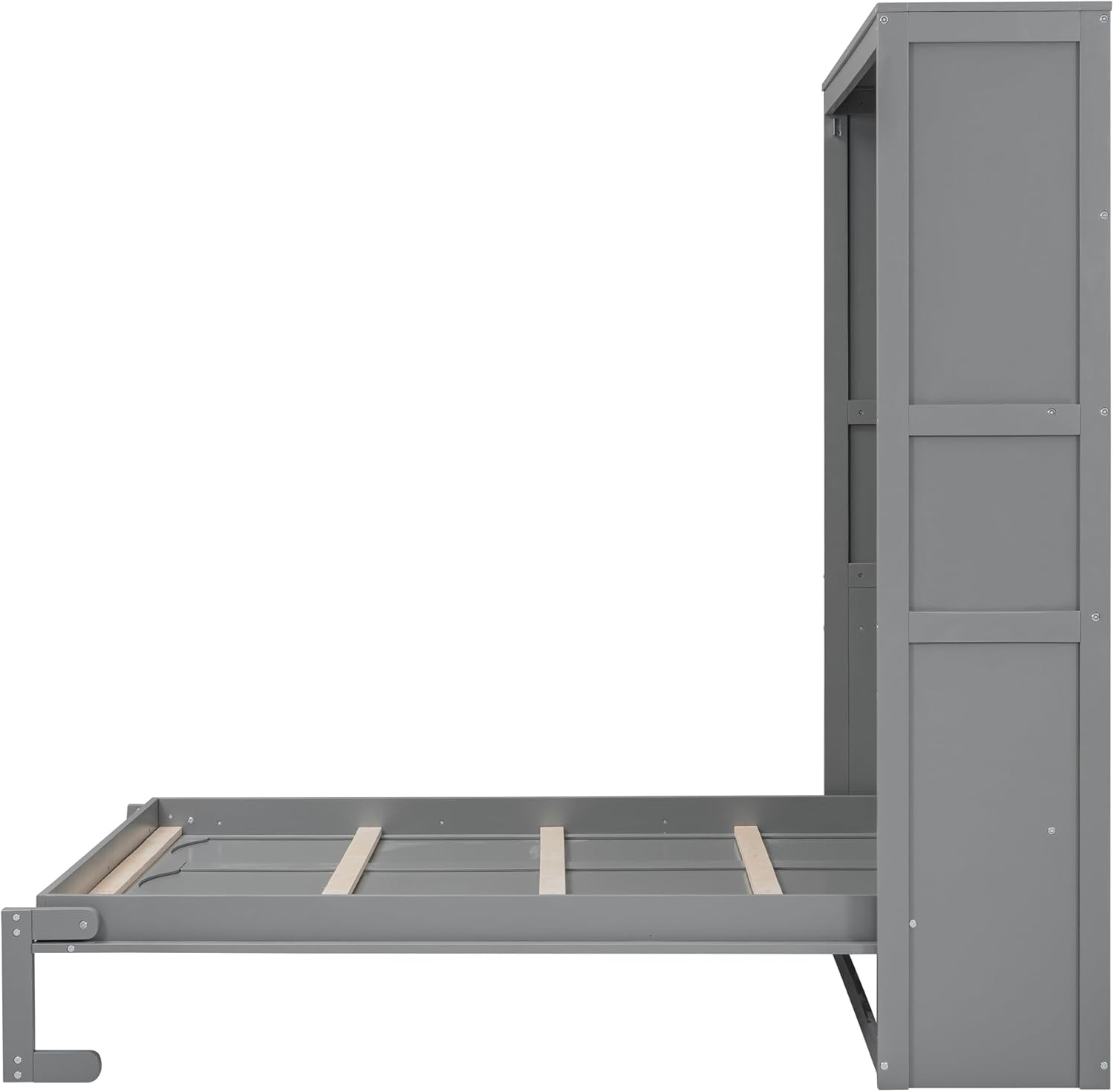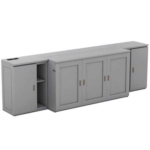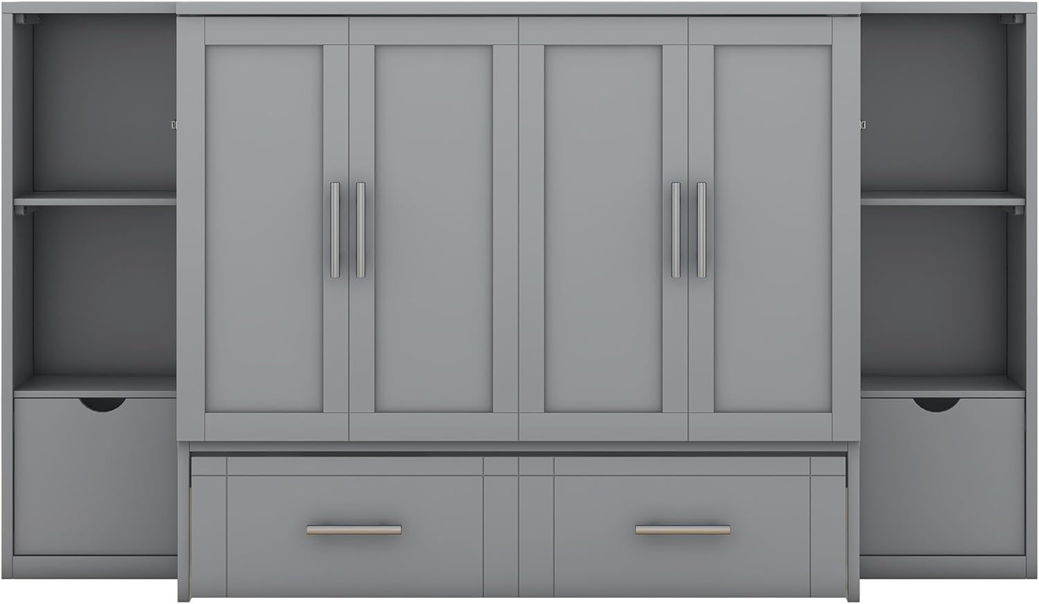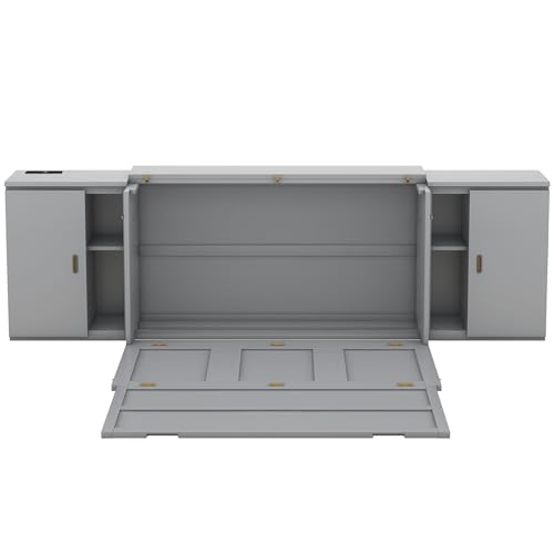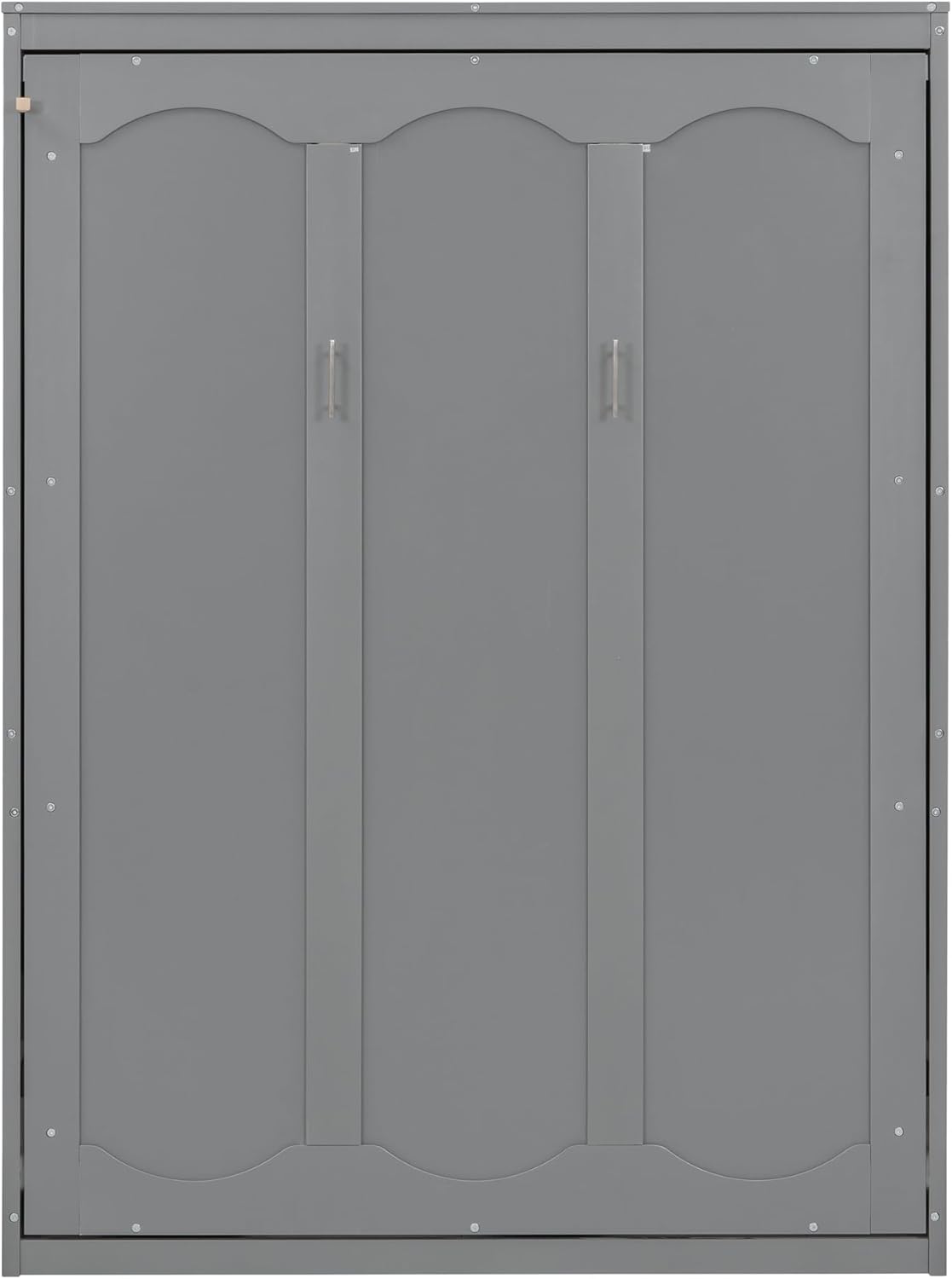 Harper & Bright Designs Full Size Murphy Bed with Shelves, Easy Fold Wood Wall Bed, Space-Saving Murphy Bed Cabinet Full for Guest Room Home Office,Grey