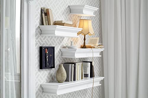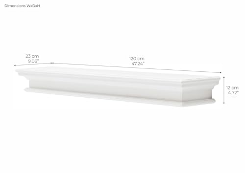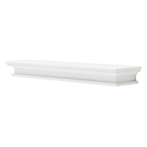 Halifax Pure White Mahogany Wood Floating Shelf, Extra Long