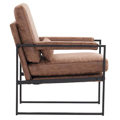 Mid-Century Armchair with Metal Frame,Living Room Chair with Extra-Thick Padded Backrest and Seat Cushion,Single Sofa Chairs with Non-Slip Feet,105° Slop Back,PU Leather Accent Chair for Club,Office