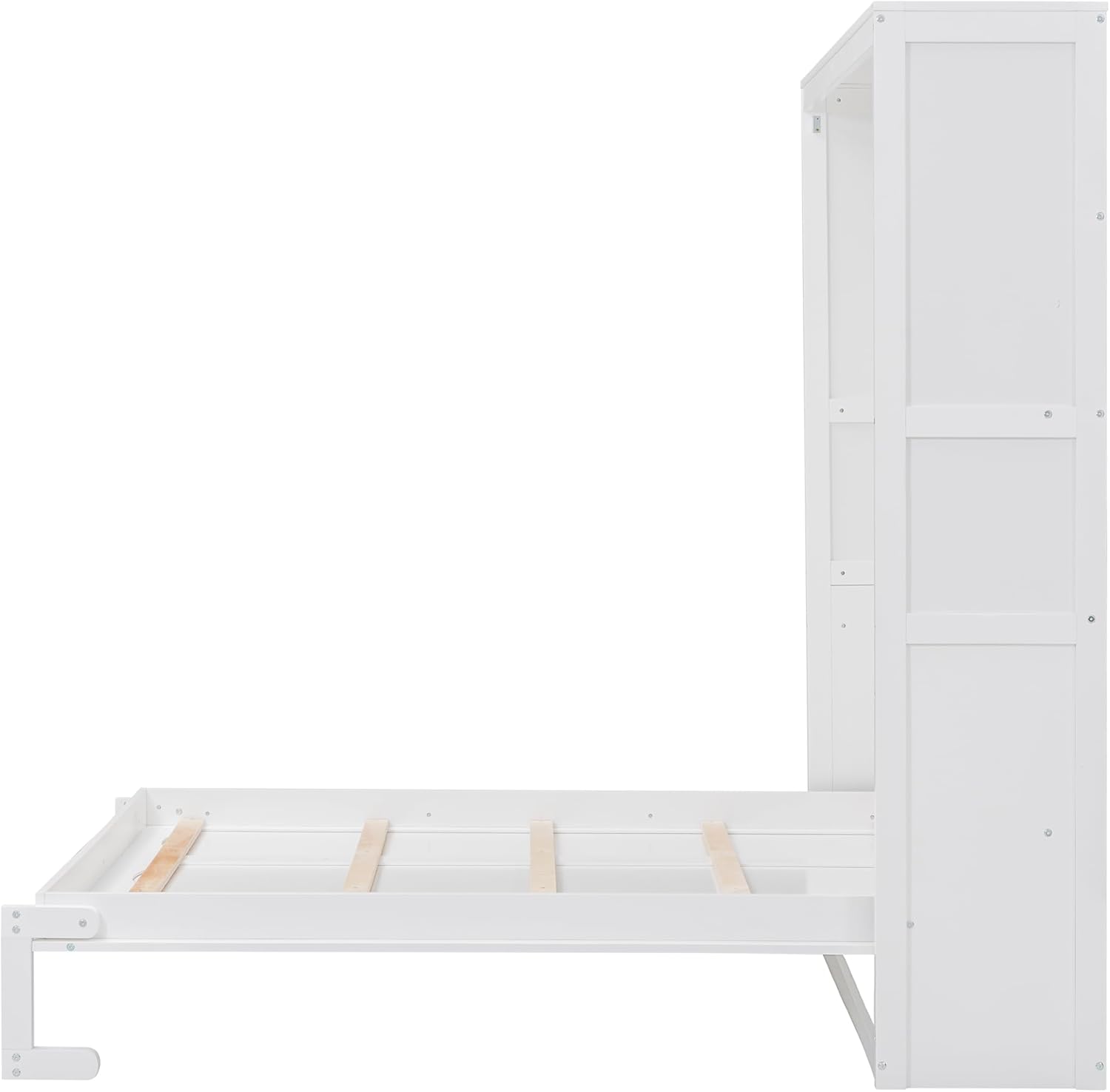 Full Size Murphy Frame,with Cabinet, Drawers and Storage Shelves,Space-Saving Wall Bed for Multipurpose Guest Room or Home Office,White, White-17