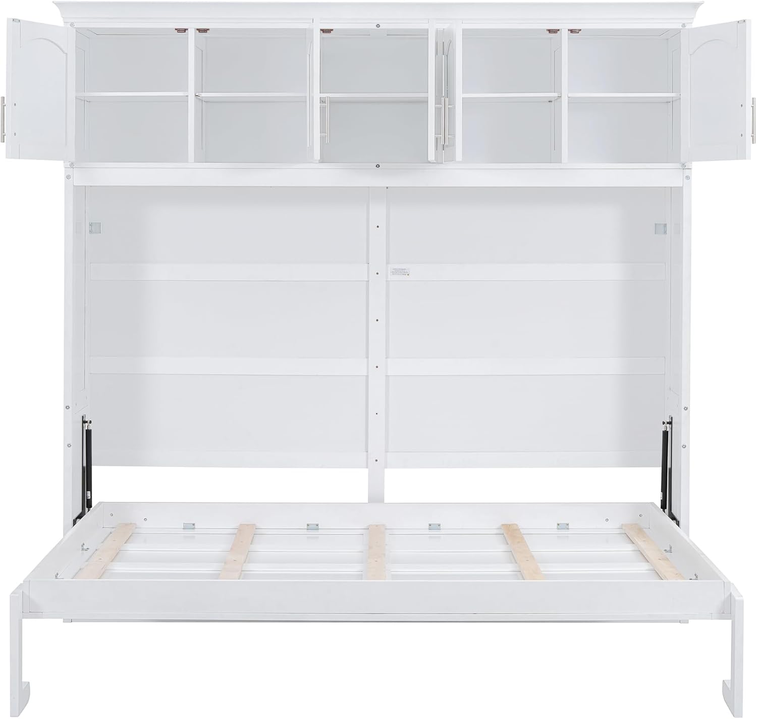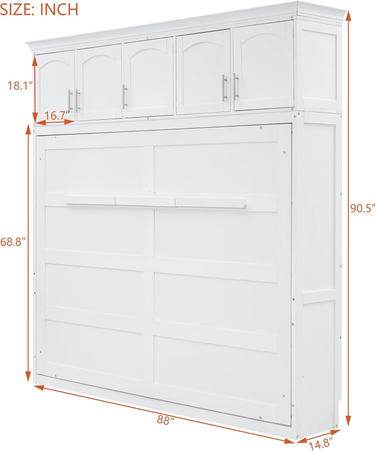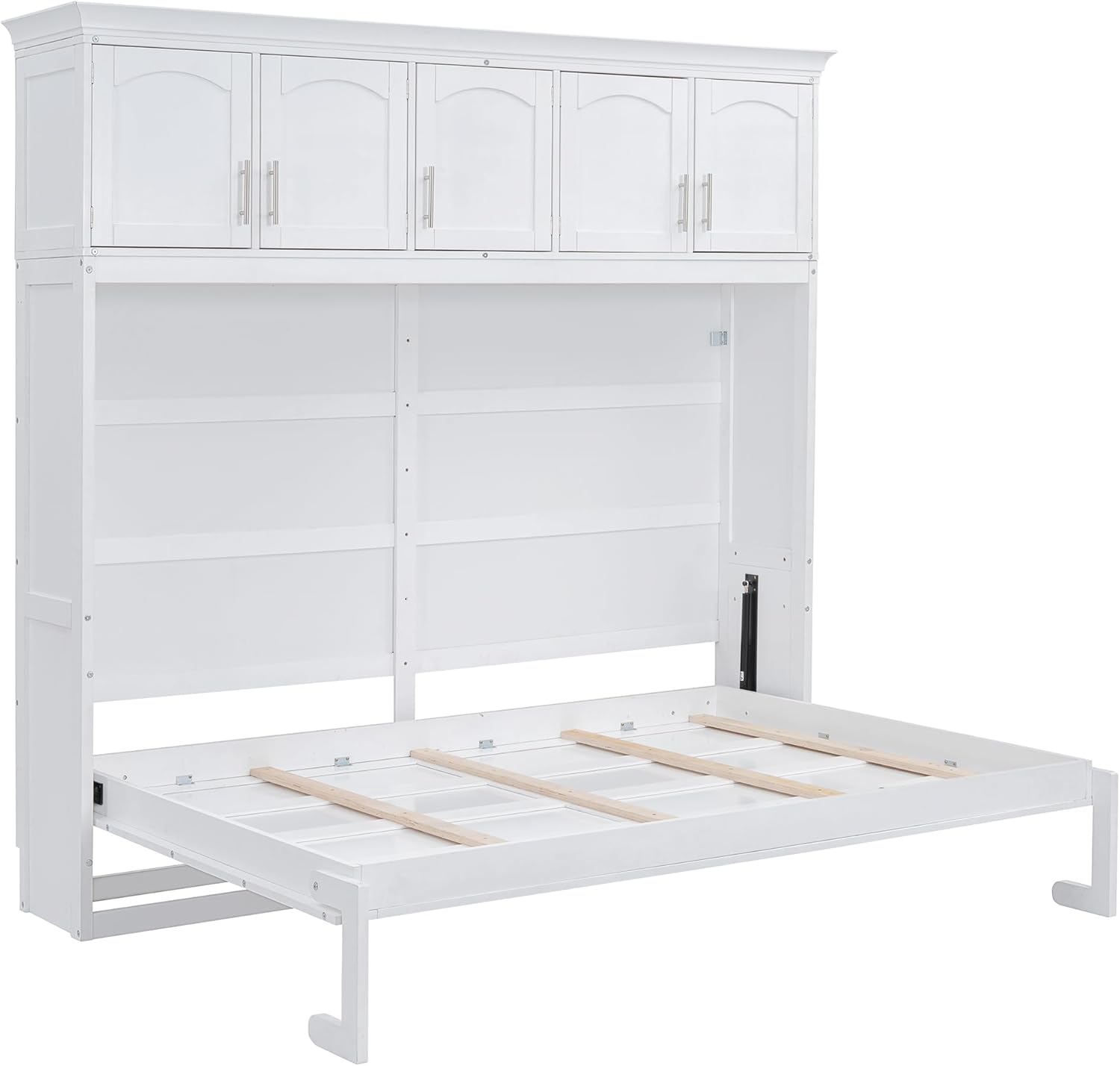 Queen Size Top Cabinets, Wardrobe High Saving Folding Murphy Wall Bed with Storage for Small Space, Guest Room, Home Office, White