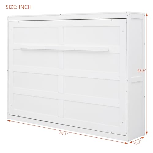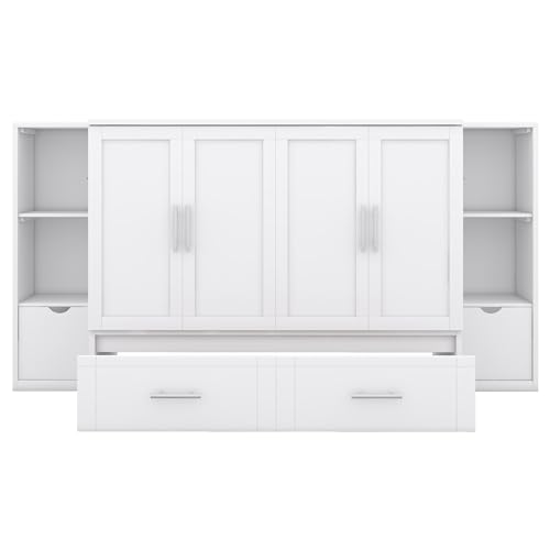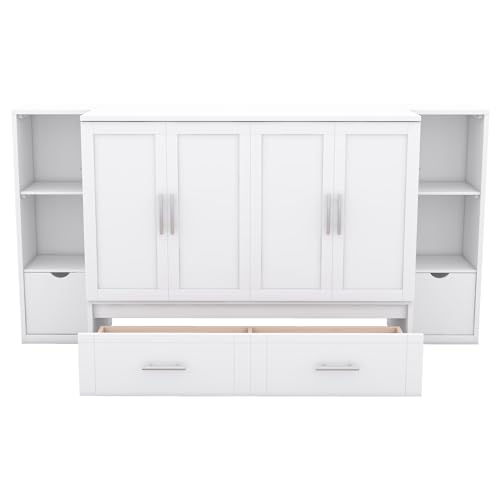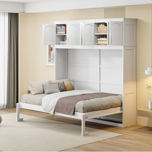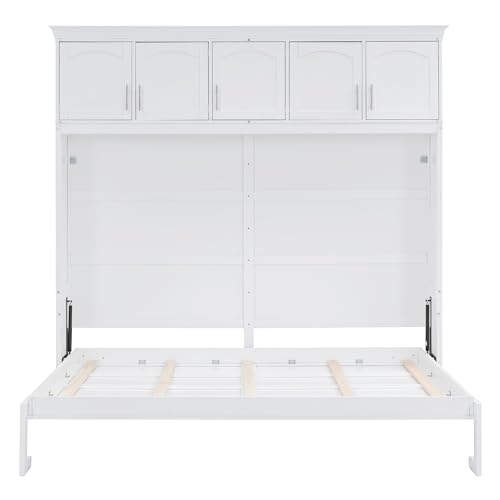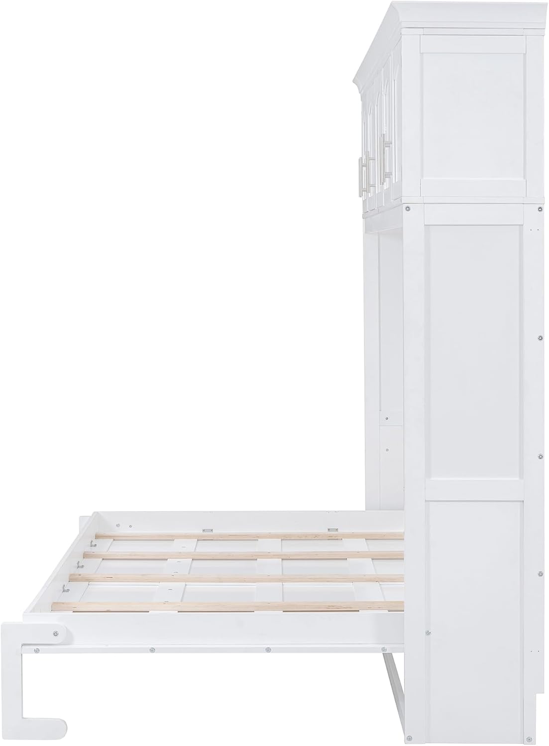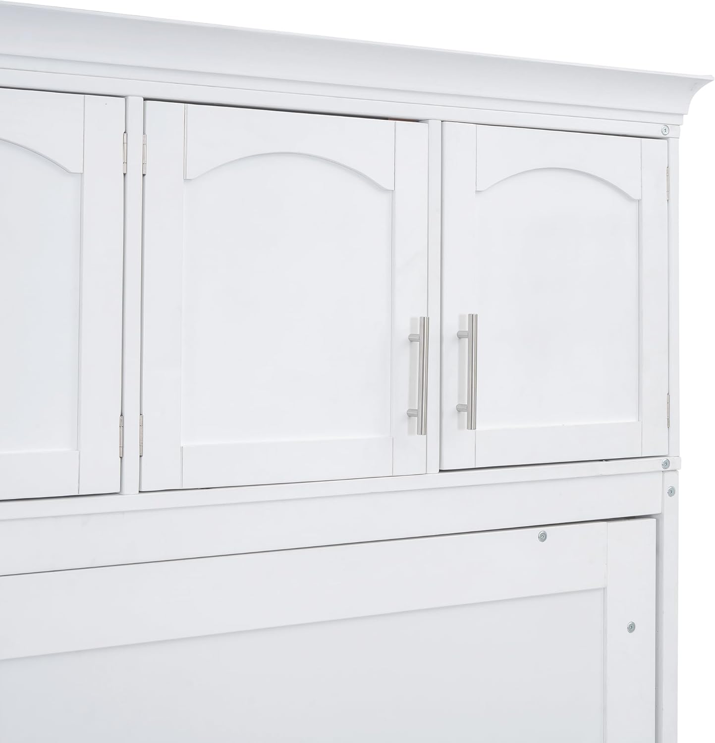 Queen Size Top Cabinets, Wardrobe High Saving Folding Murphy Wall Bed with Storage for Small Space, Guest Room, Home Office, White