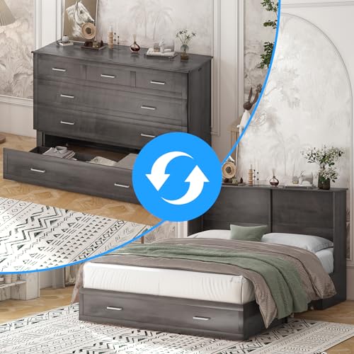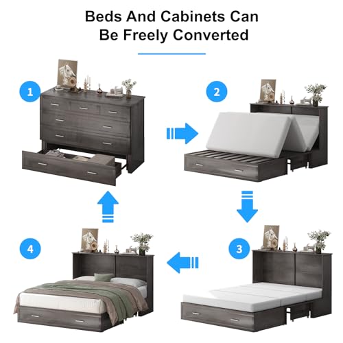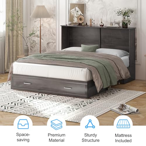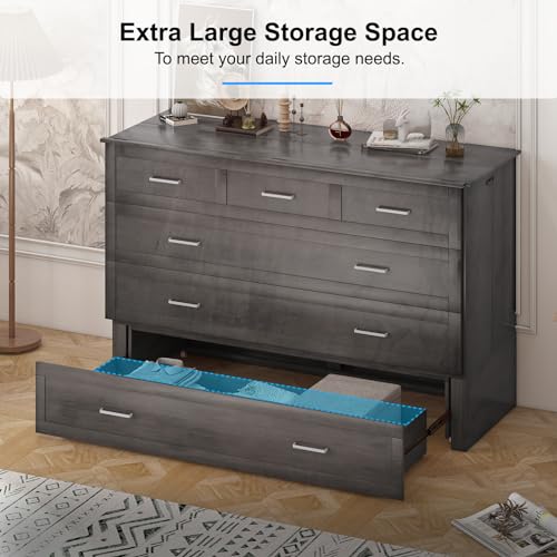 Full Size Murphy Bed Muti-Functional Design Wall Bed, Space-Saving, Hide a Bed on a Cabinet, for Guest Room Home Office (Gray)