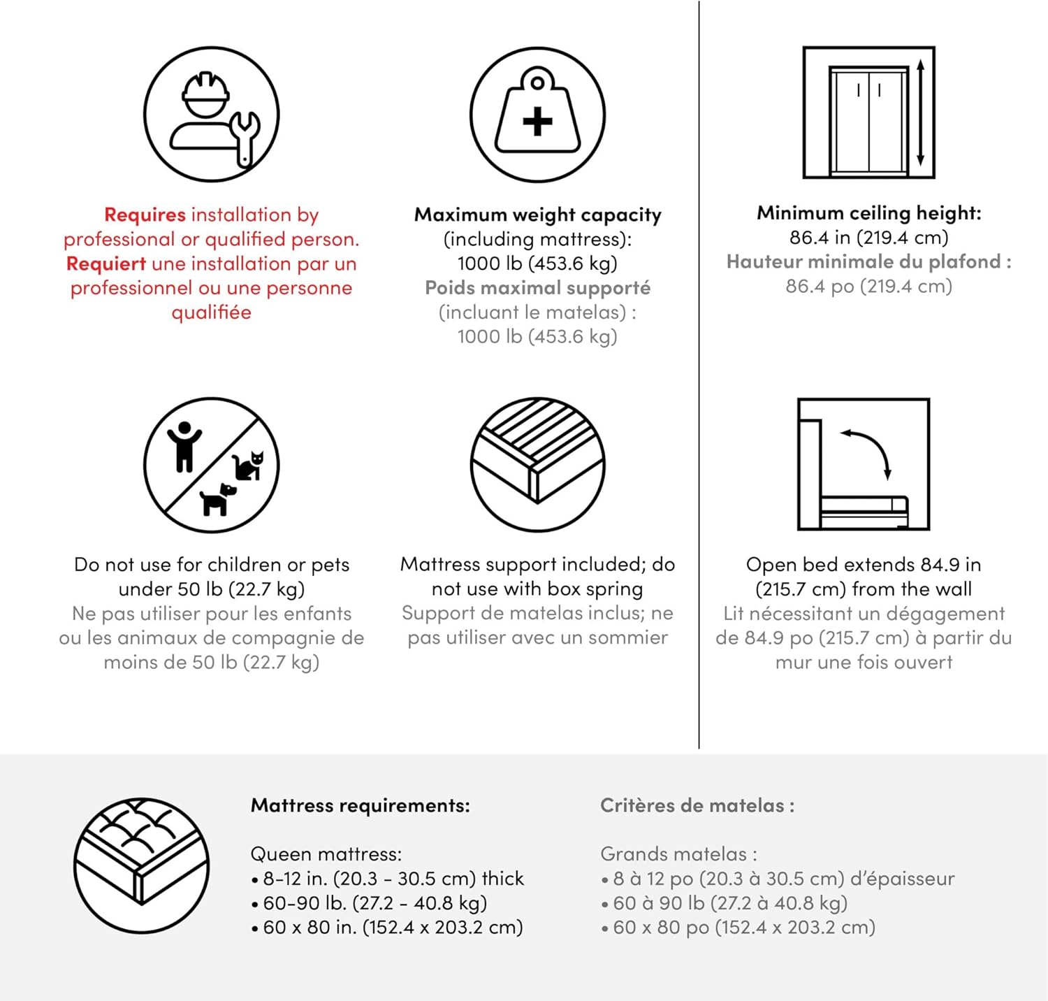 Horizontal Classic Queen 60" x 80" Wall Bed Kit, Wallbed, Murphy bed, Pull-Out bed, Foldaway bed, Hidden bed, Space Saving bed, Guest bed, Box bed, Cube bed