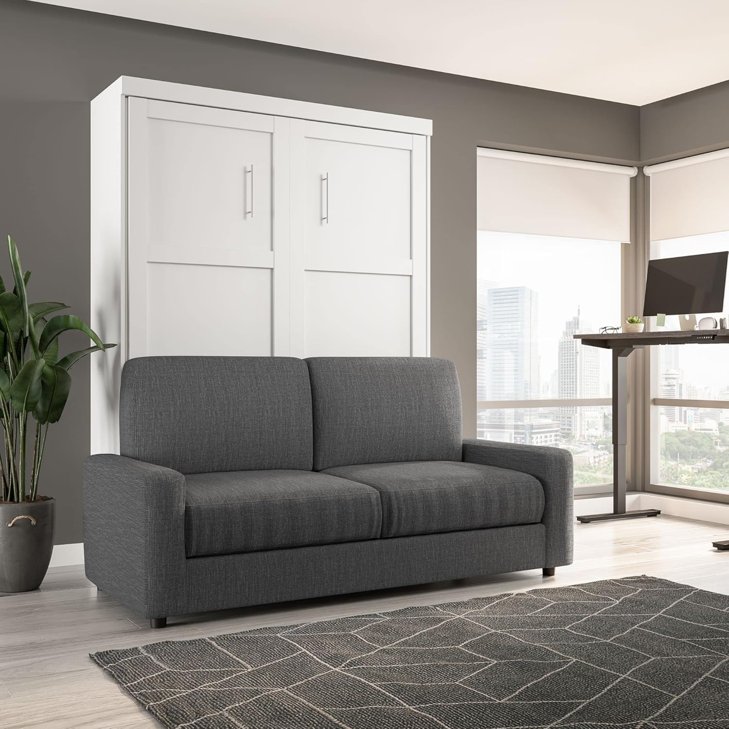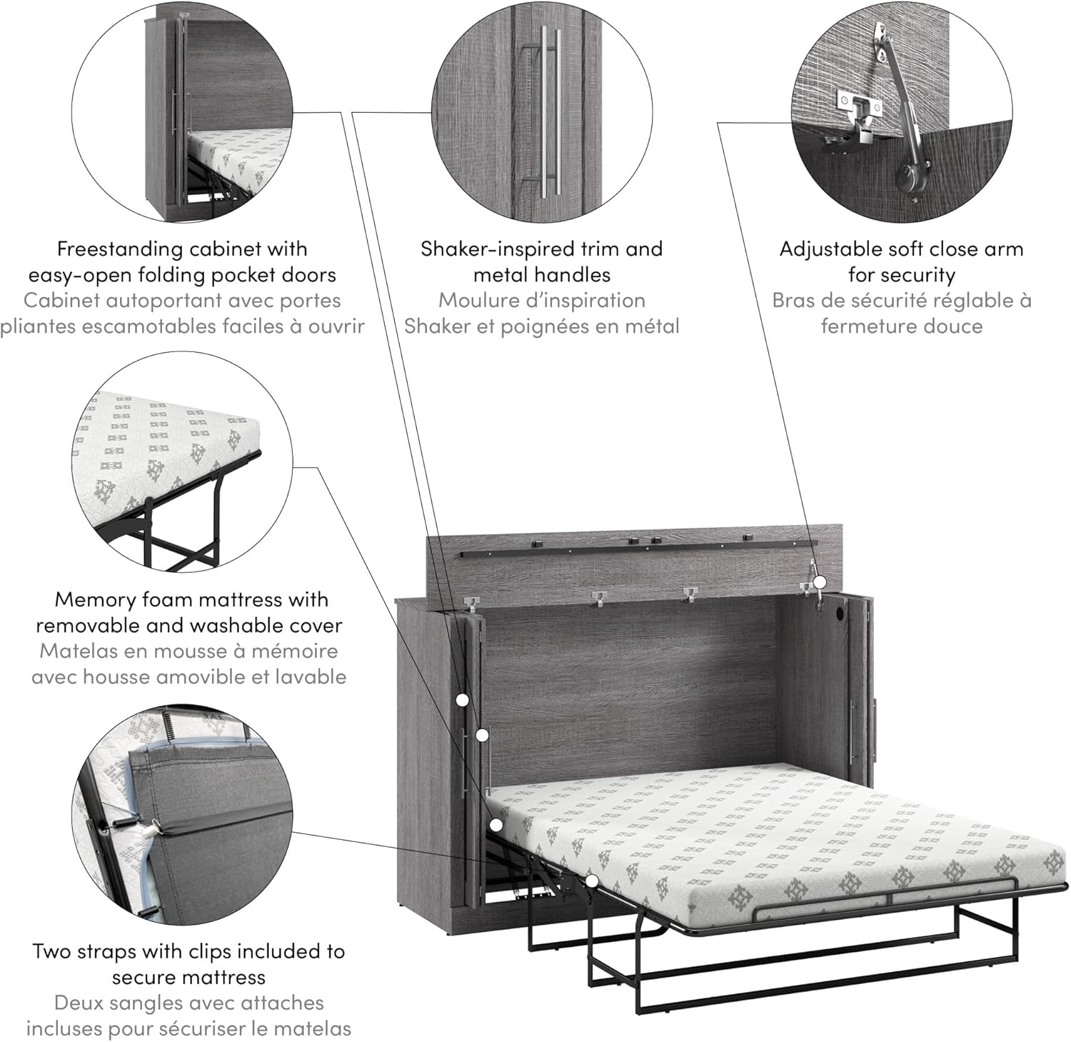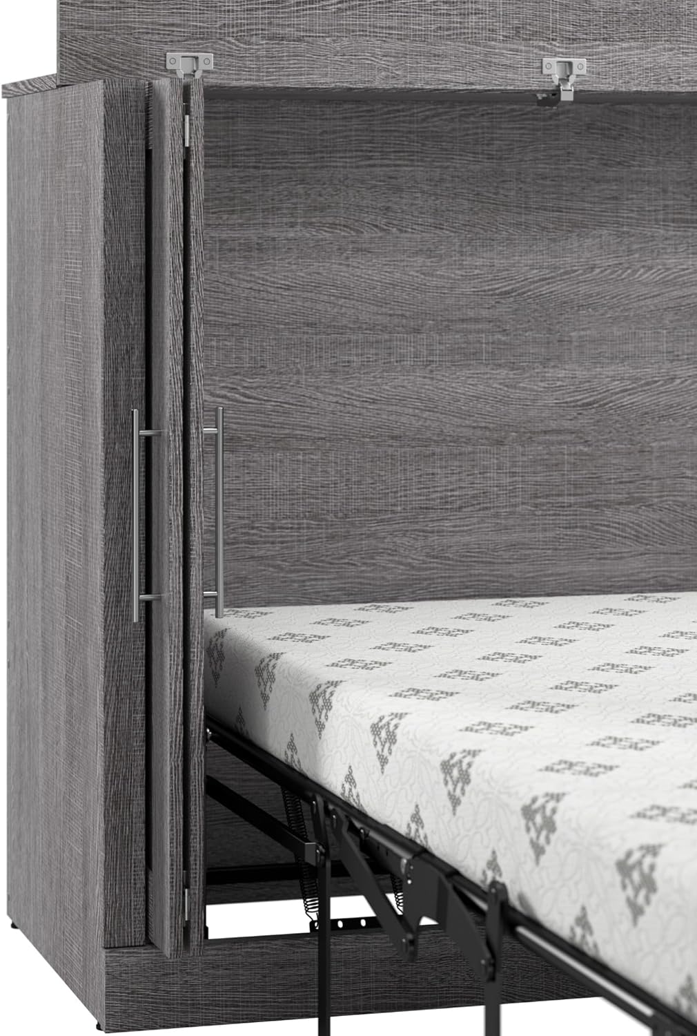 Bestar Pur 75W Murphy Cabinet Bed with Mattress, Space-Saving Sleeping Arrangement for Multipurpose Guest Room or Home Office, Queen, Bark Grey