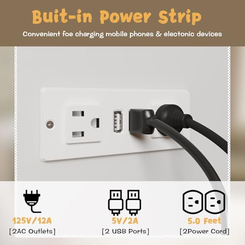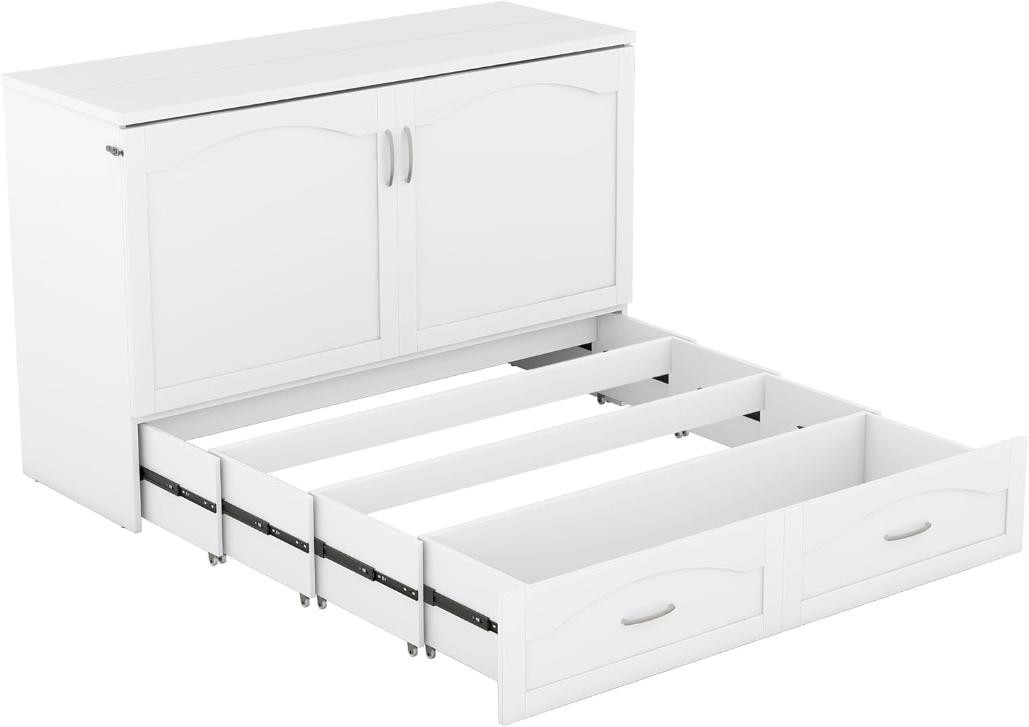 Queen Size Murphy Bed Wall Bed with Charging Stations and Storage Drawer, Space-Saving Cabinet Bed, Pulley Structure Design, Murphy Bed Chest for Home Office Guest Room, White