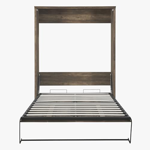 SOFTSEA Full Size Murphy Bed, Folding Wall Bed Cabinet, Space-Saving Bed for Guest Room Bedroom Home Office, Brown