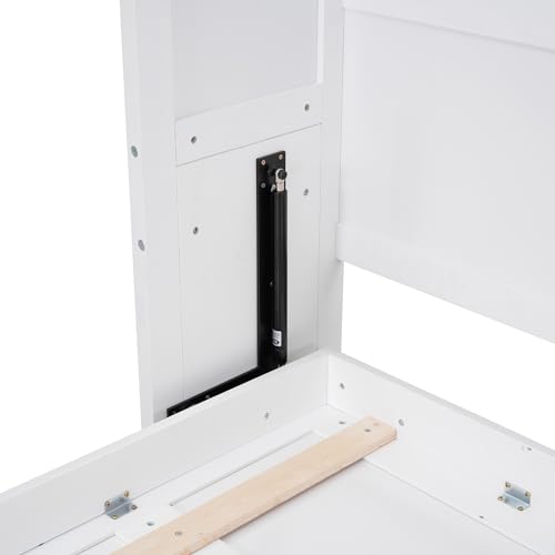 Full Size Murphy Bed with Storage Top Cabinets, Classics Cube Bed Frame with New Pneumatic Lift and Wooden Slat Support, Space Saving Design, Ider for Guest Room or Home Office, White