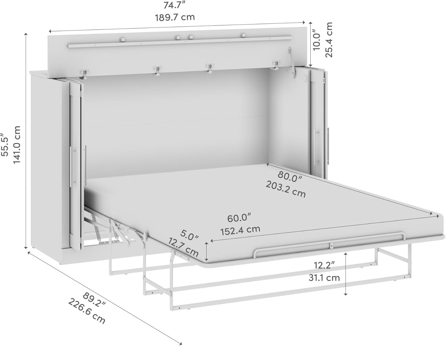 Bestar Pur Murphy, Space-Saving Wall Bed for Multipurpose Guest Room or Home Office, QUEEN, White
