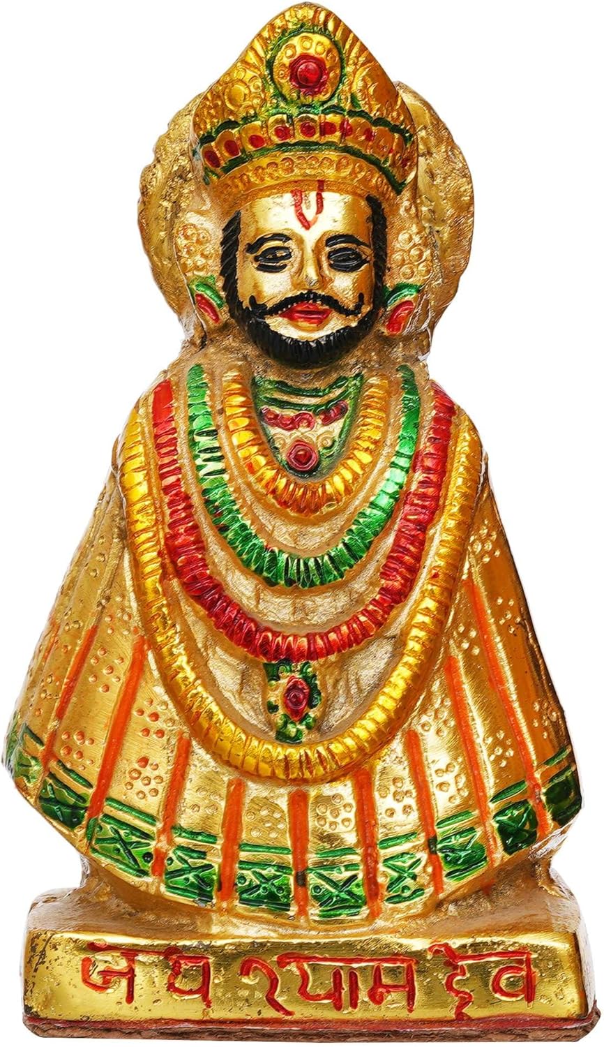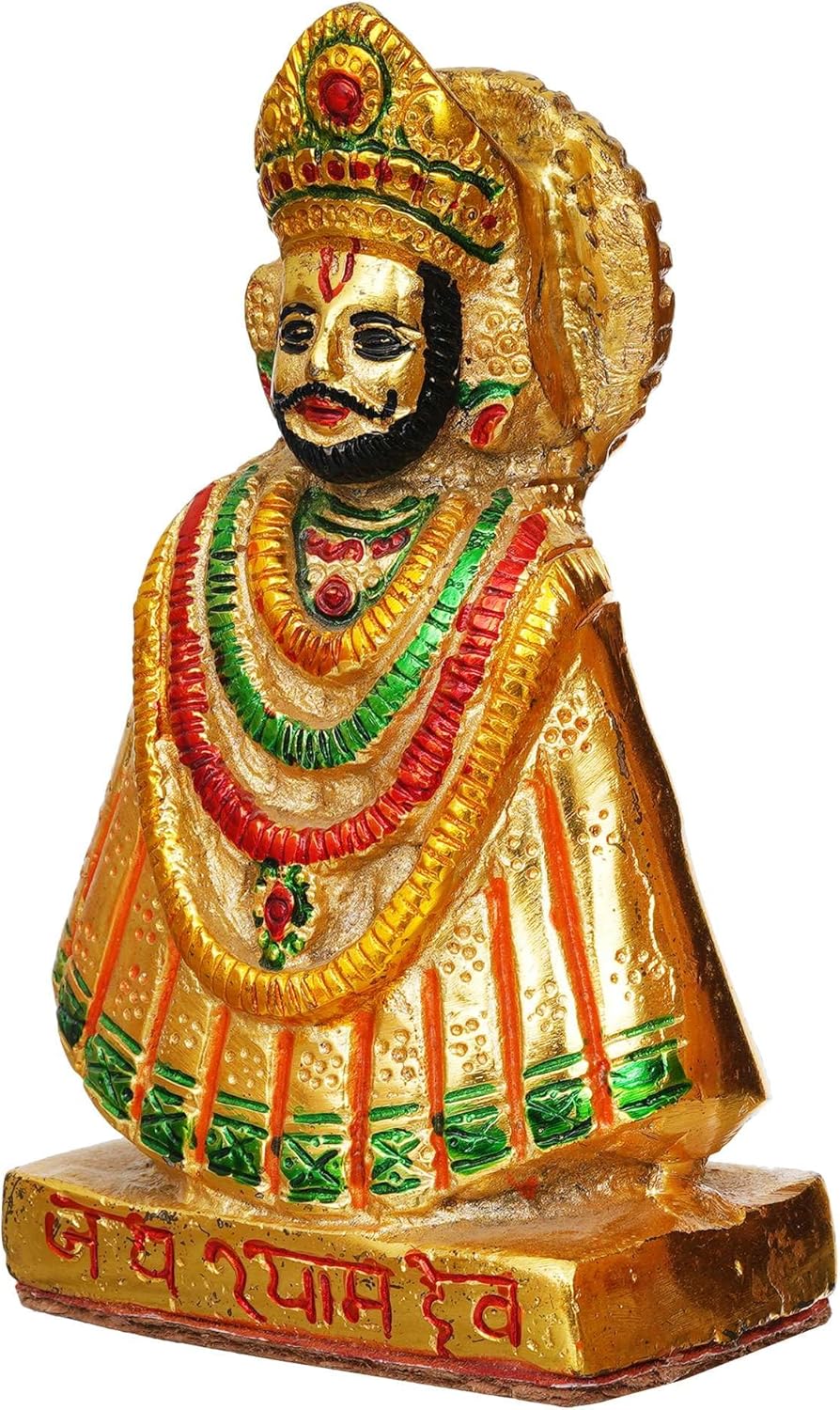Amalfi Interior Shree Khatu Shyam Ji Murti Baba Khatu Maharaj Idol Statue Sculpture Pooja Idols - Home Décor Brass Lord Best Item for Puja and Home, Temple & Office Multicolor
