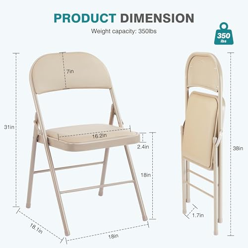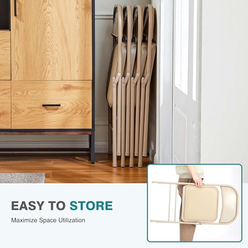 Folding Chair 4 Pack, UP Leather Padded Folding Chairs, Sturdy Metal Foldable Chairs, Easy to Use and Store, Outdoor and Indoor, for Home, Office, Party, Comfy.khaki