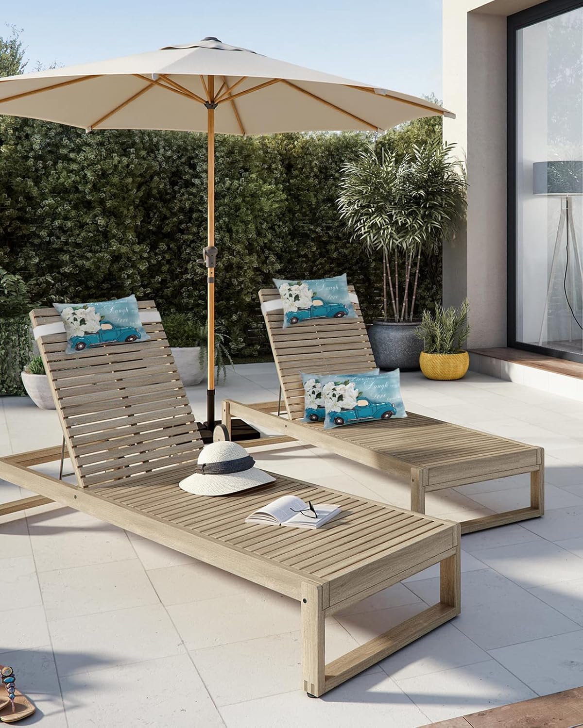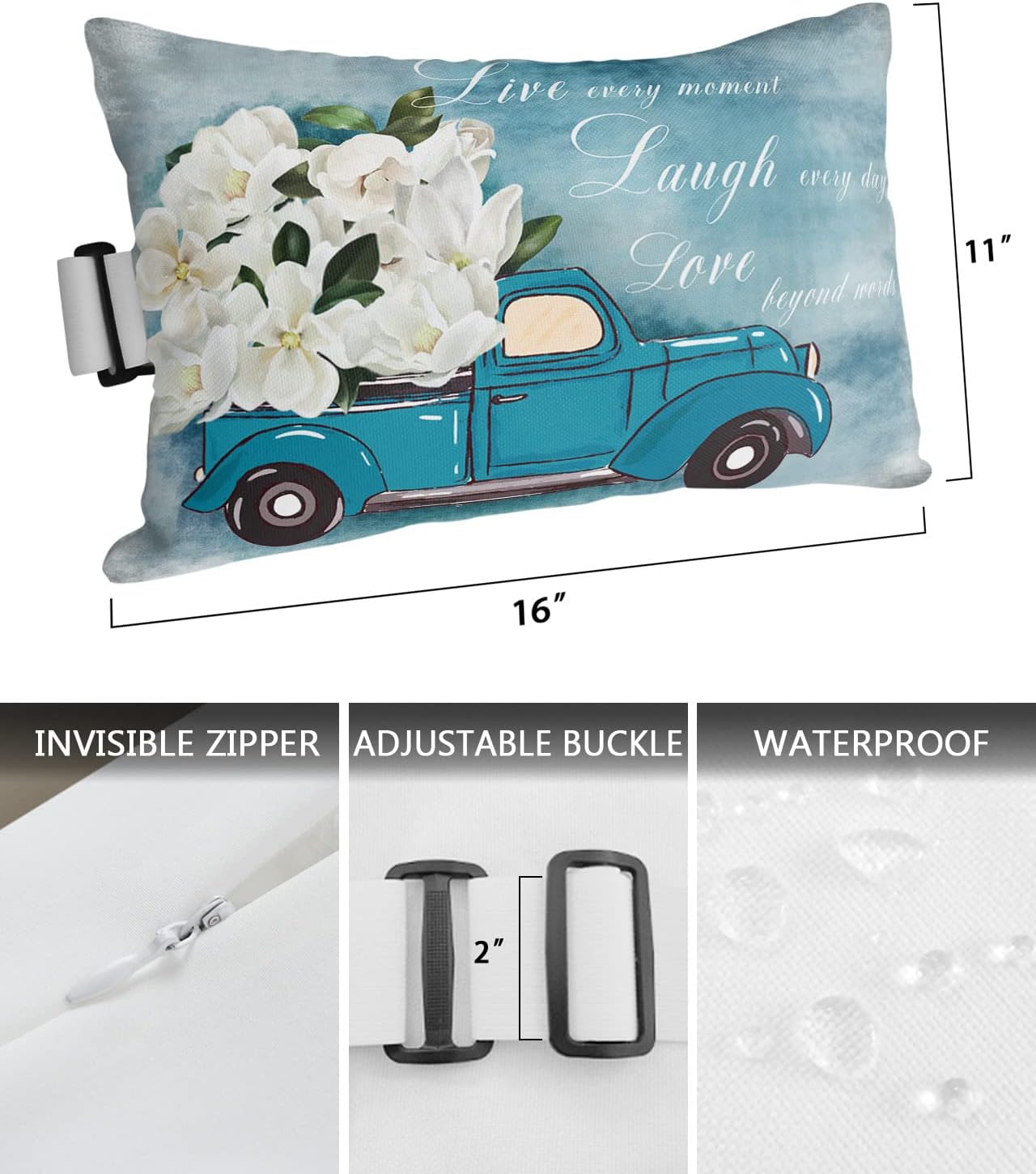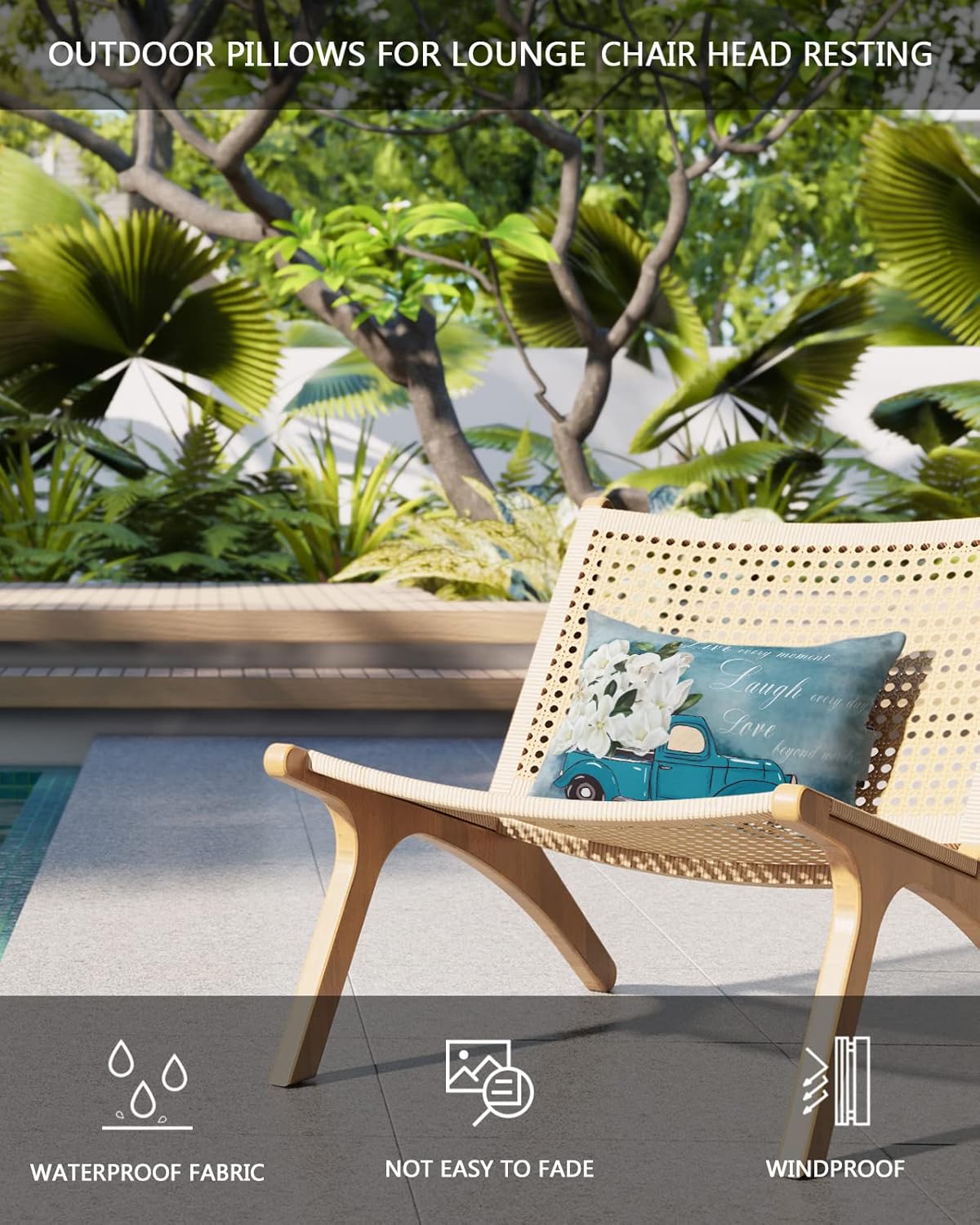 Waterproof Headrest Pillows for Chaise Lounge Chair Couch,Vintage Farm Truck with Magnolia Flowers Throw Pillow with Strap Set of 2 Decorative Lumbar Cushion Pillows Home Decor Render Gradient