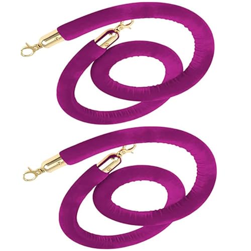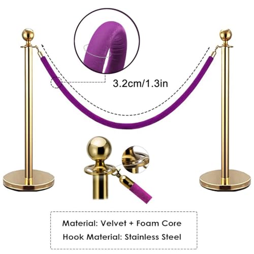 Queue Barrier Ropes with Gold/Silver Plated Hook, Velvet Stanchion Rope 2-13Ft, Crowd Control Rope Velvet Rope for Queue Divider, Rope Safety Barrier 100/200/300CM, Queue Line Barrier(Purple-SilverHoo