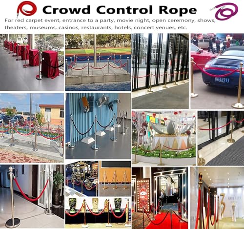 Velvet Rope Wall Mounted, Hanging Barriers Rope with 2 Wall Hooks Kits, Post Stanchion Queue Hanging VIP Rope for Movie Theaters & Red Carpet Event Crowd Control Stanchion Rope, 3Ft-13Ft(D1,2.8m/9ft)