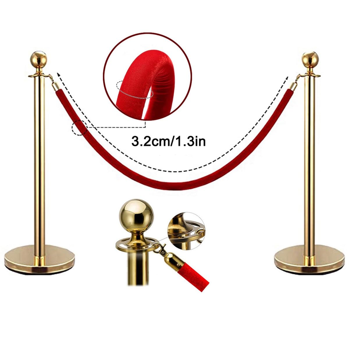 Velvet Rope Wall Mounted, Hanging Barriers Rope with 2 Wall Hooks Kits, Post Stanchion Queue Hanging VIP Rope for Movie Theaters & Red Carpet Event Crowd Control Stanchion Rope, 3Ft-13Ft(B2,2.5m/8ft)