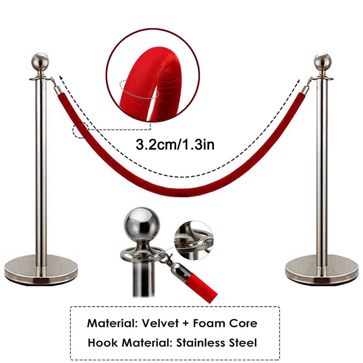 Velvet Rope Wall Mounted, Hanging Barriers Rope with 2 Wall Hooks Kits, Post Stanchion Queue Hanging VIP Rope for Movie Theaters & Red Carpet Event Crowd Control Stanchion Rope, 3Ft-13Ft(A2,2.8m/9ft)