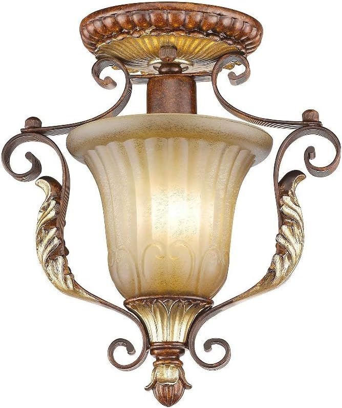 Livex Lighting 8578-63 Villa Verona 1 Light Verona Bronze Finish Flush Mount with Aged Gold Leaf Accents and Rustic Art Glass