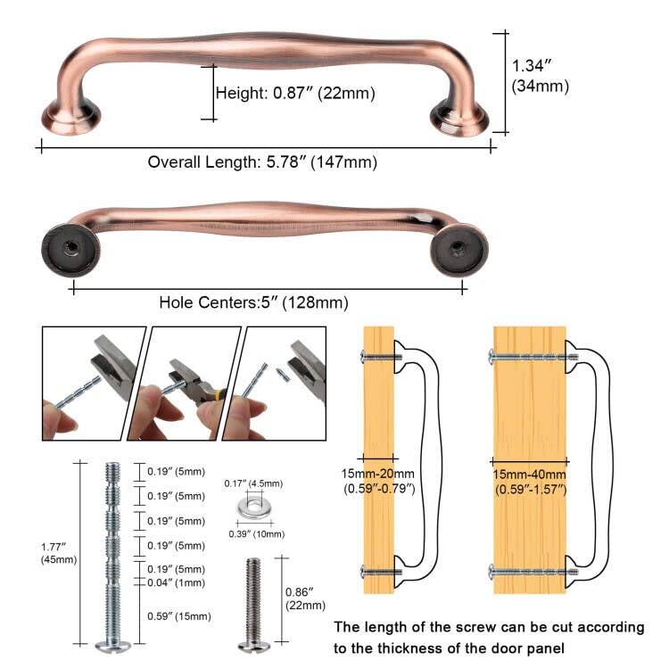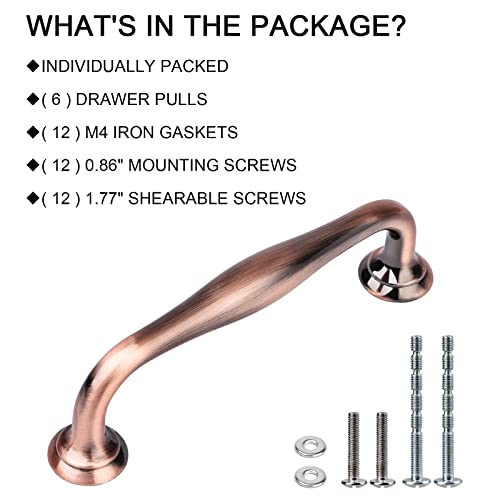 WEAVERBIRD 6 Pack Cabinet Handles Red Copper 5" Hardware Pull Handles, Antique Dresser Drawer Pulls Furniture Drawer Pulls