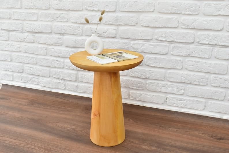 Coffee table in wood modern style, Side table, living room decoration, Plant Stand, tea table, housewarming gift, Mushroom end table (H: 18" (45 cm),Unfinished)