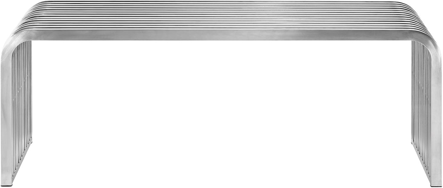 Modern Contemporary Urban Design Mid Century Bedroom Living Room Bench, Silver, Metal Stainless