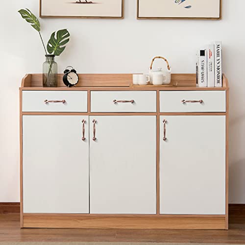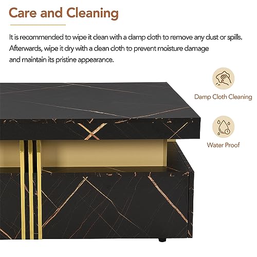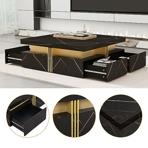 P PURLOVE Modern Luxury Coffee Table,Square Coffee Table with 4 Drawers,Contemporary Center Cocktail Table with Gold Accents for Living Room,White