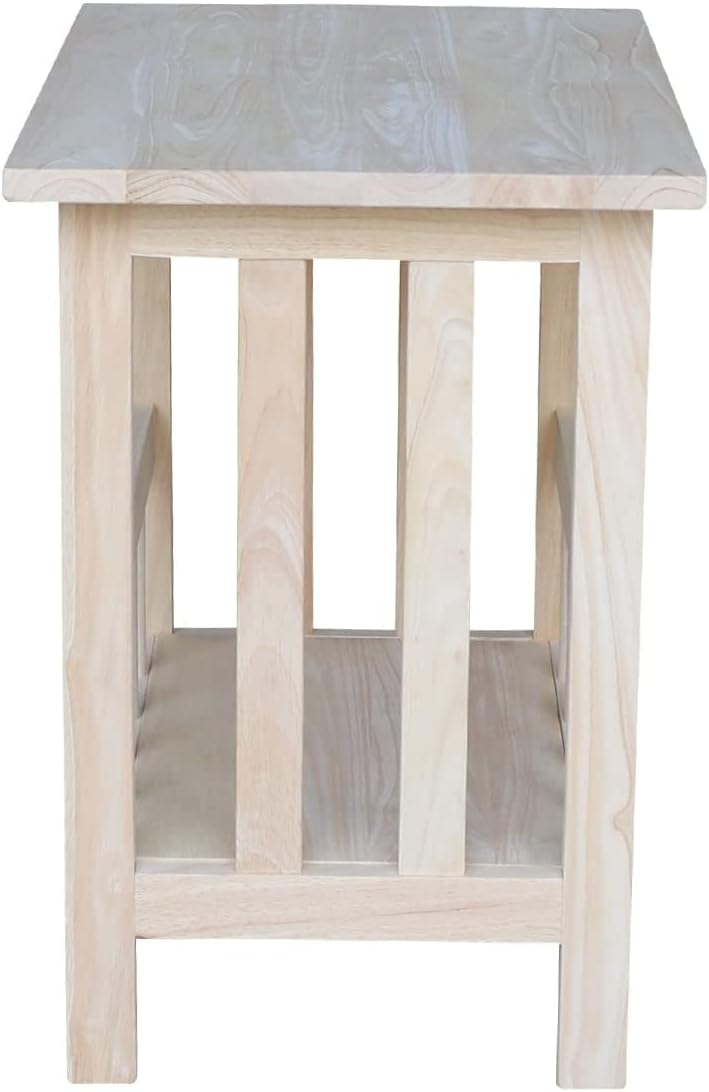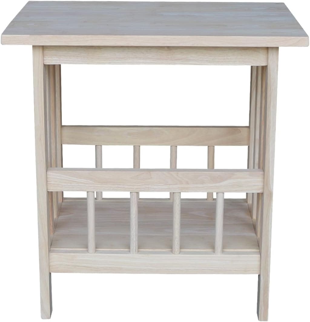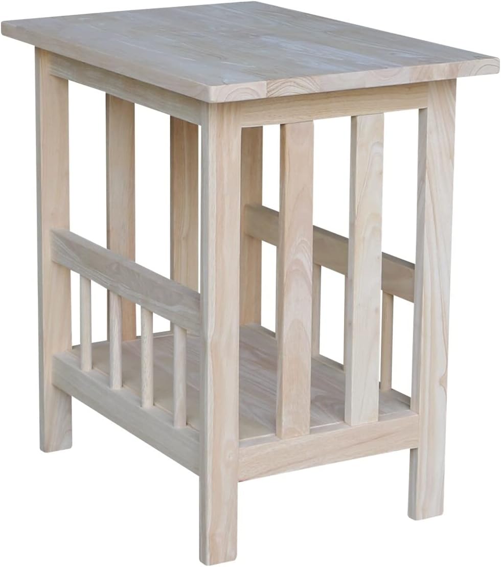Unfinished Solid Parawood Mission Magazine End Table Brown Traditional Rectangular Rubberwood Wood Finish