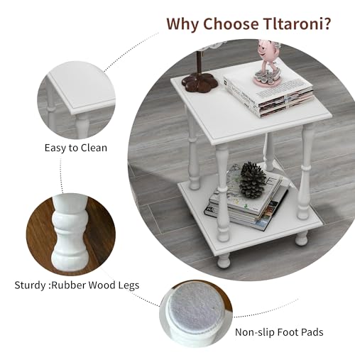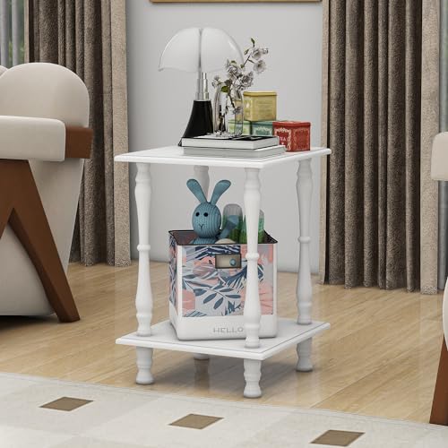 Square End Table with Storage Shelf Vintage Sofa Side Table 2-Tier Wooden Retro Bedside Table for Living Room Bedroom and Small Space, White