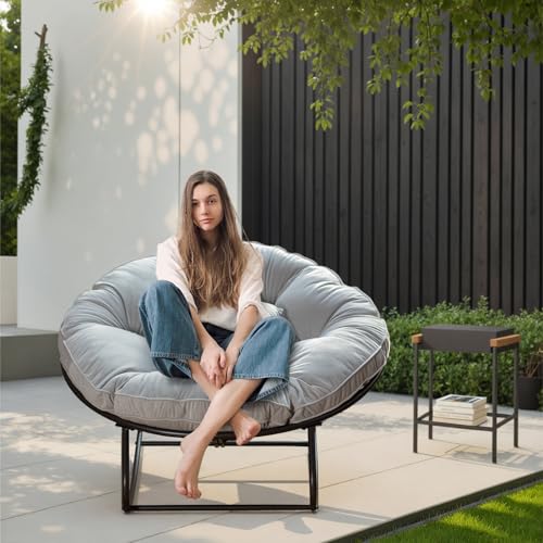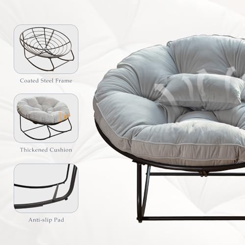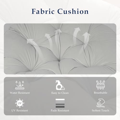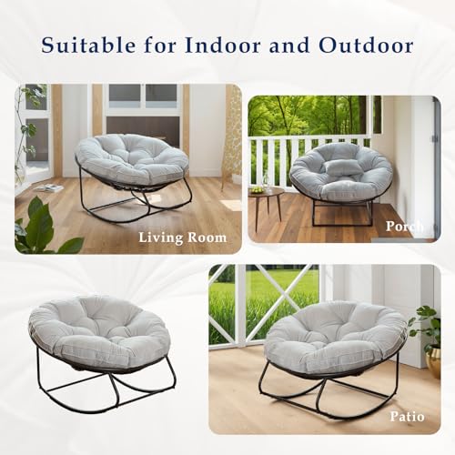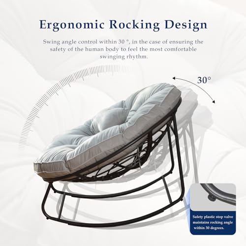 Rocking Chair Outdoor, Patio Egg Rocking Chair,Papasan Rocking Chair with Thickened Cushion, Outdoor Rattan Wicker Lounge Chair for Patio Porch Garden Backyard Dark Gray