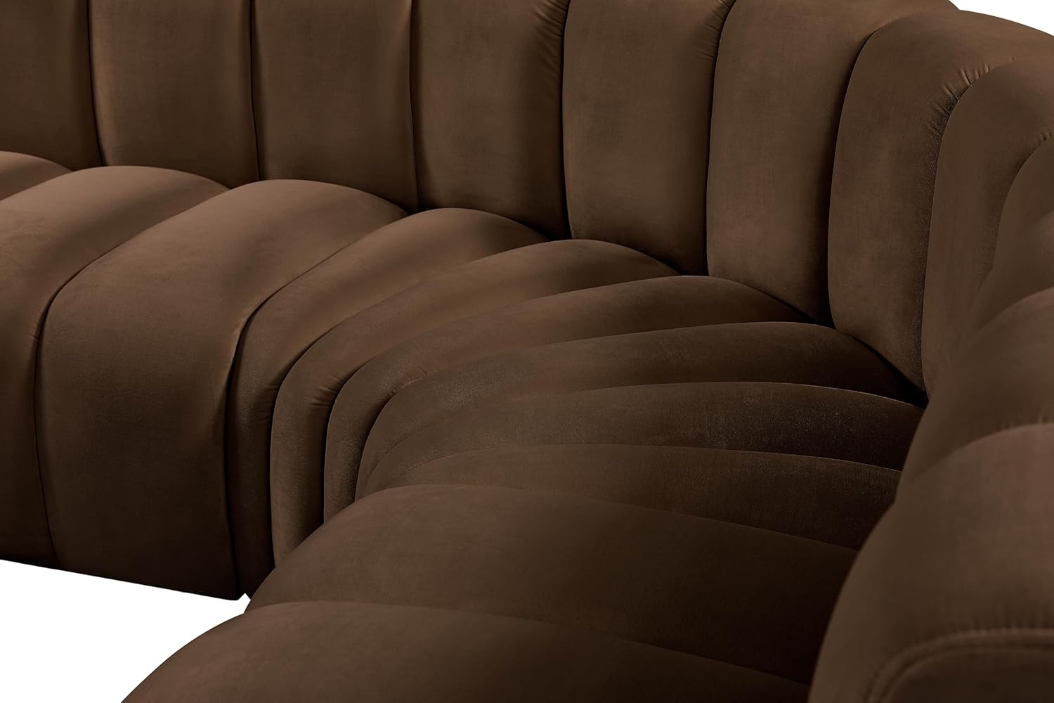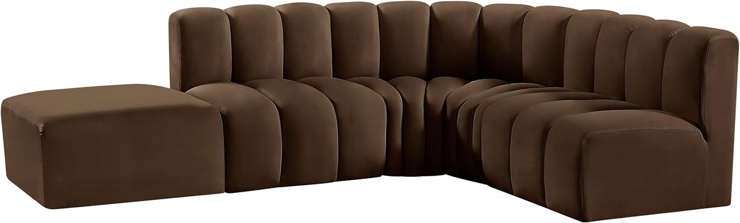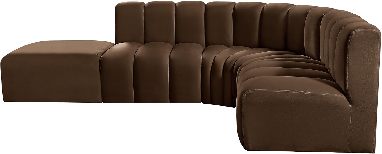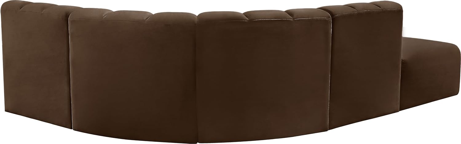 Meridian Furniture Arc Collection Modern | Contemporary Sofa with Soft Velvet, Deep Channel Tufting, Modular Design, 127" W x 61" D x 30" H, Brown