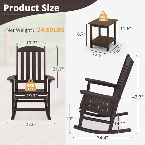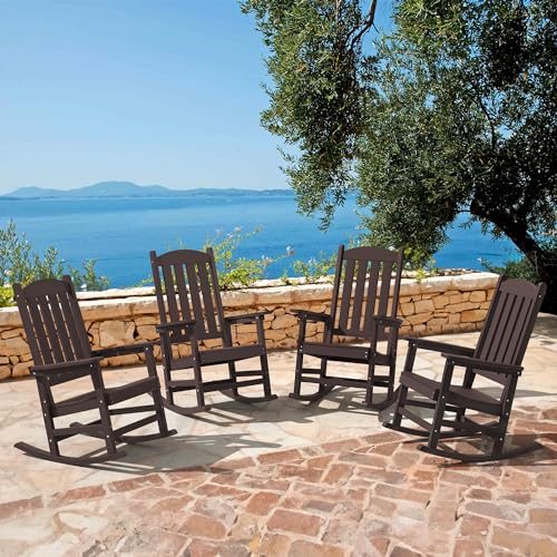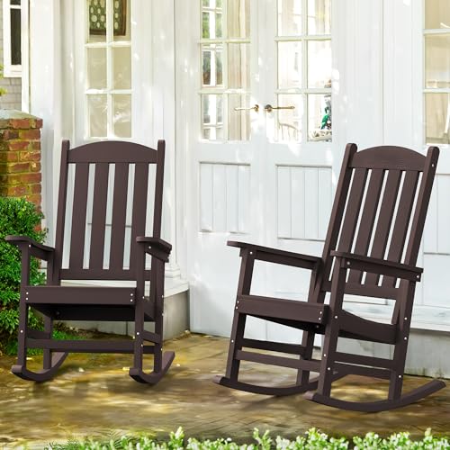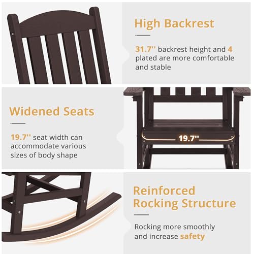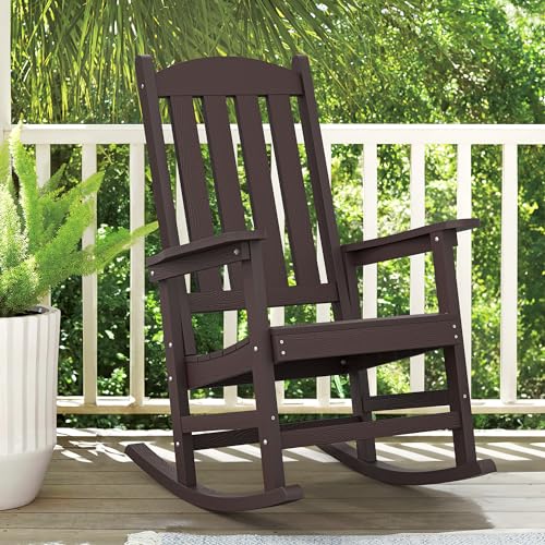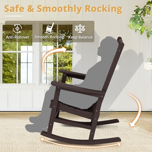 LUE BONA Outdoor Rocking Chair, HDPS Poly Rocking Chair, All Weather Resistant Plastic Outdoor Indoor Porch Rocker, Heavy Duty Rocking Chair for Patio, Lawn, Garden, 300LBS, ESPRESSO