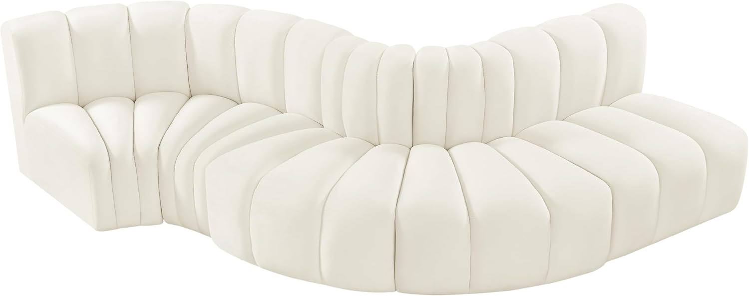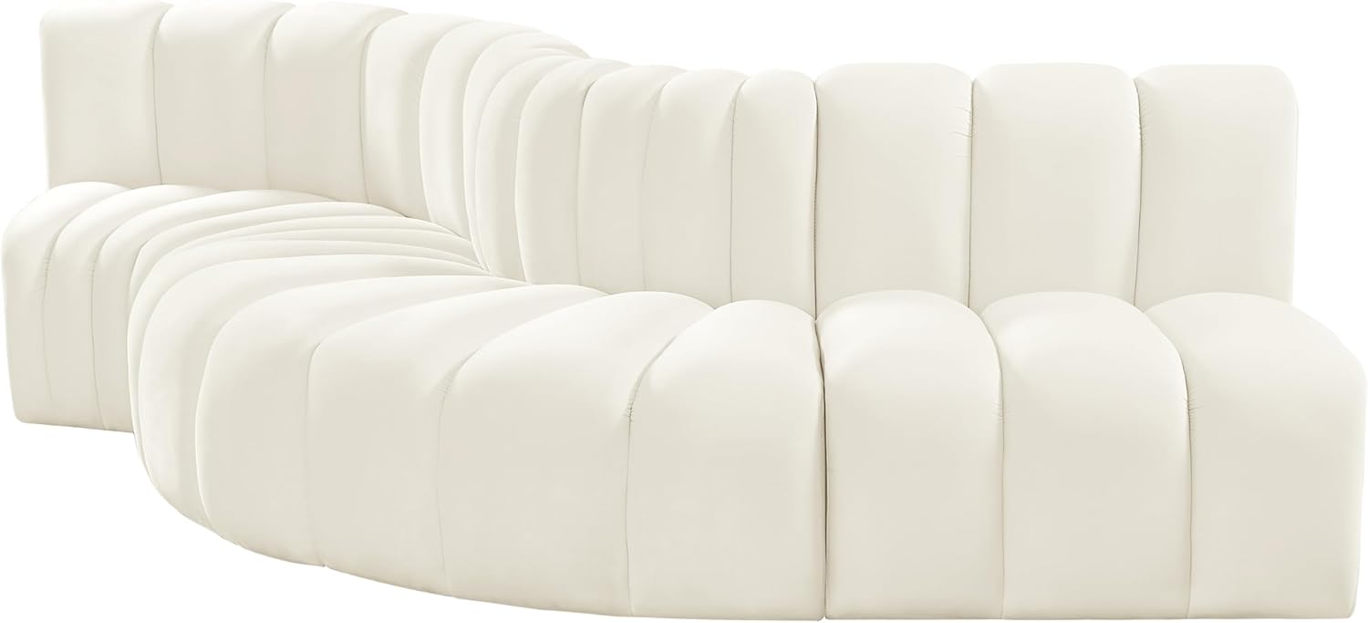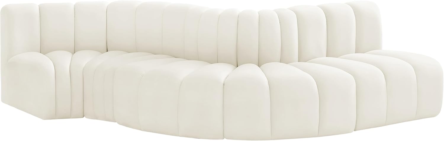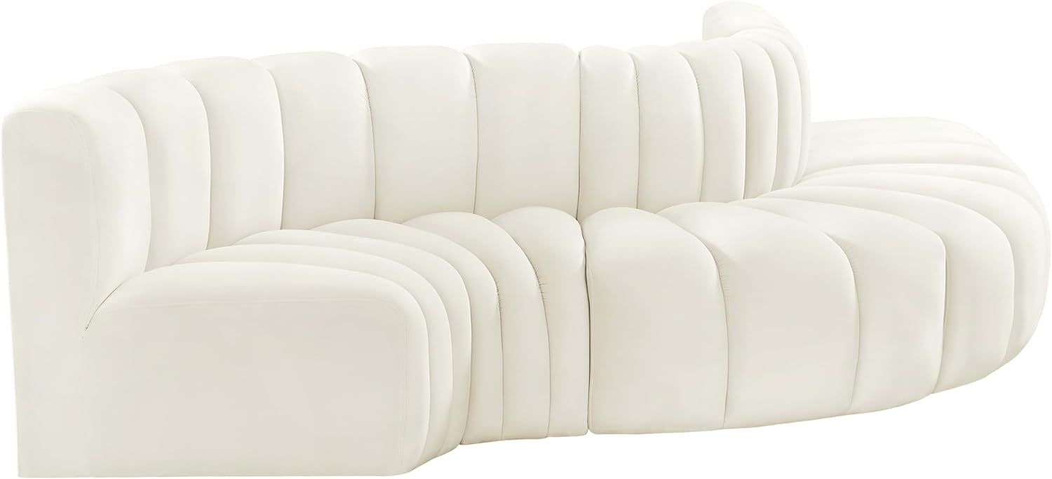 Meridian Furniture Arc Collection Modern | Contemporary Sofa with Soft Velvet, Deep Channel Tufting, Modular Design, 122 W x 52 D x 30 H, Cream