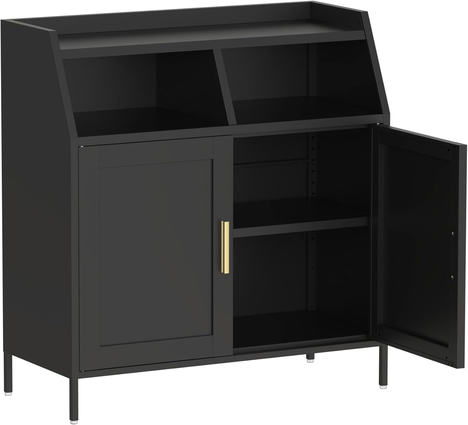 Metal Buffet Sideboard Cabinet with Storage,Storage Cabinet Modern Sideboard Buffet Table with Doors for Living Room Kitchen Dining Room, Black