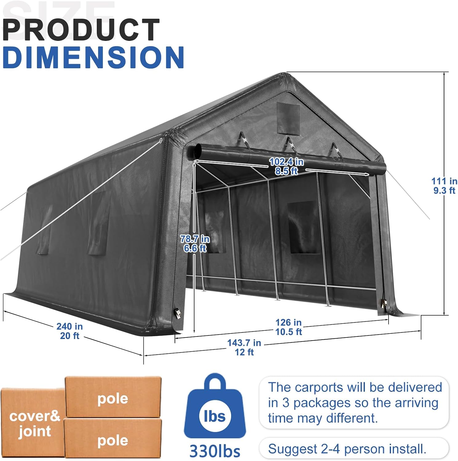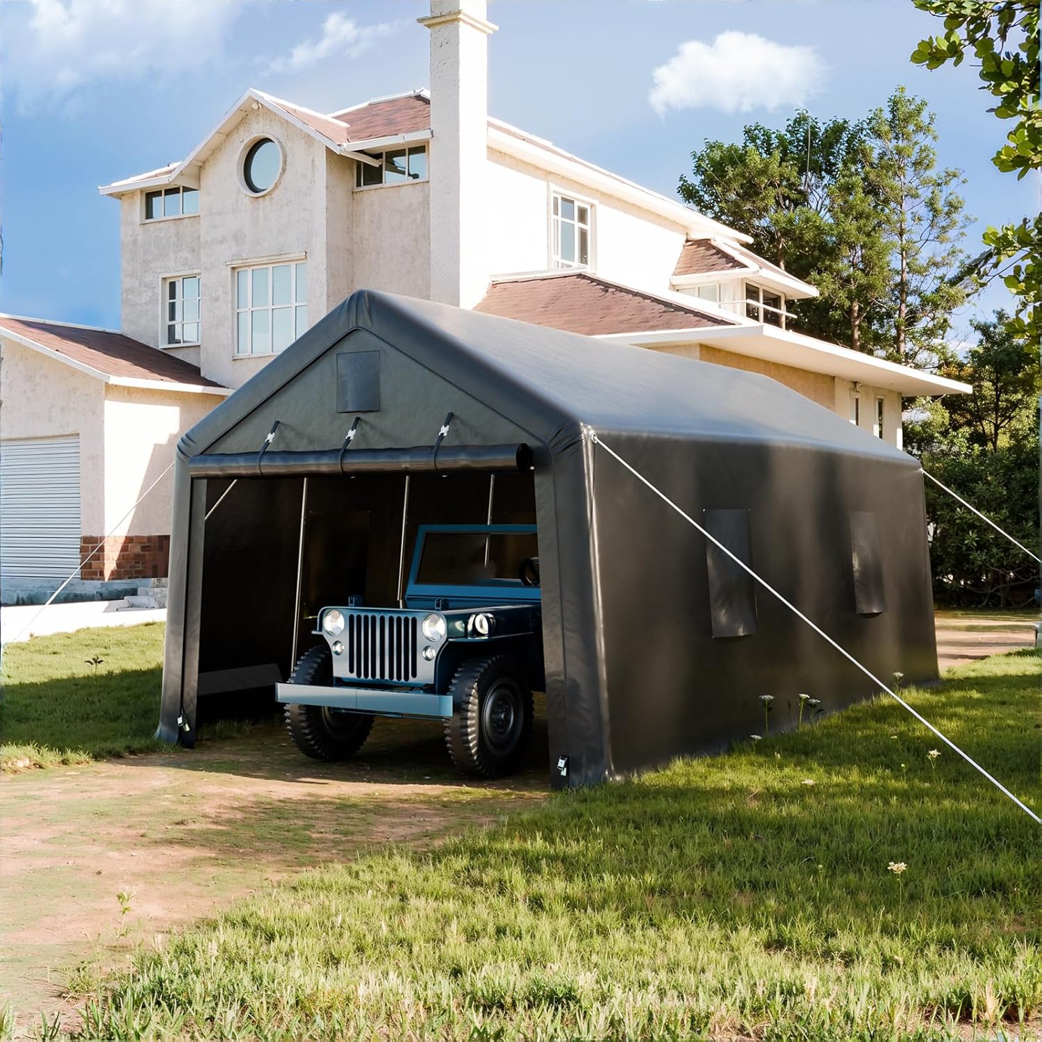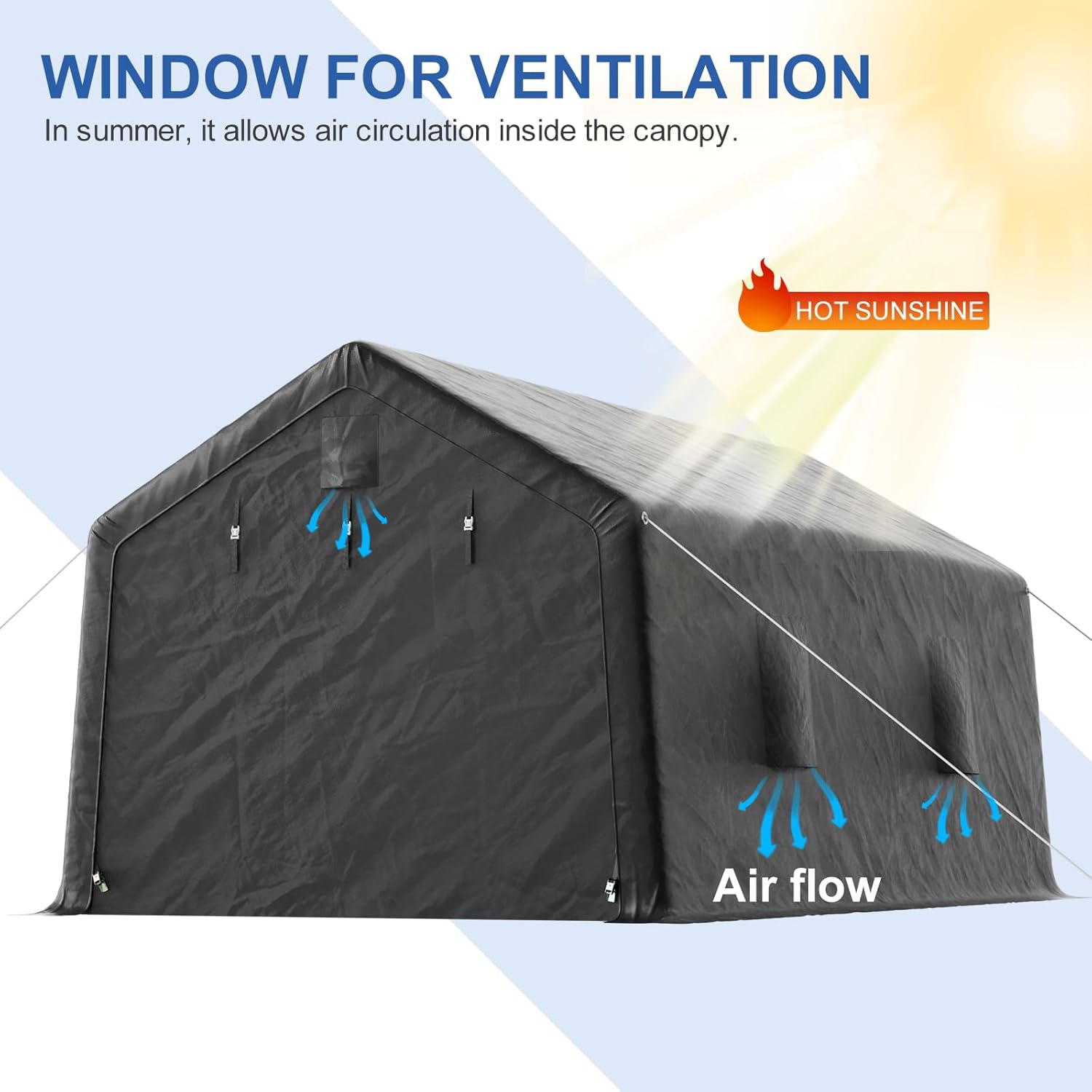 12x20ft Heavy Duty Carport, Car Port With All-Steel Metal Frame,Portable Garage For Automobile,Truck,Boat,Outdoor Storage Shelter,6*Ventilated Windows,4*Windproof Ropes,Anti-Snow Car Canopy