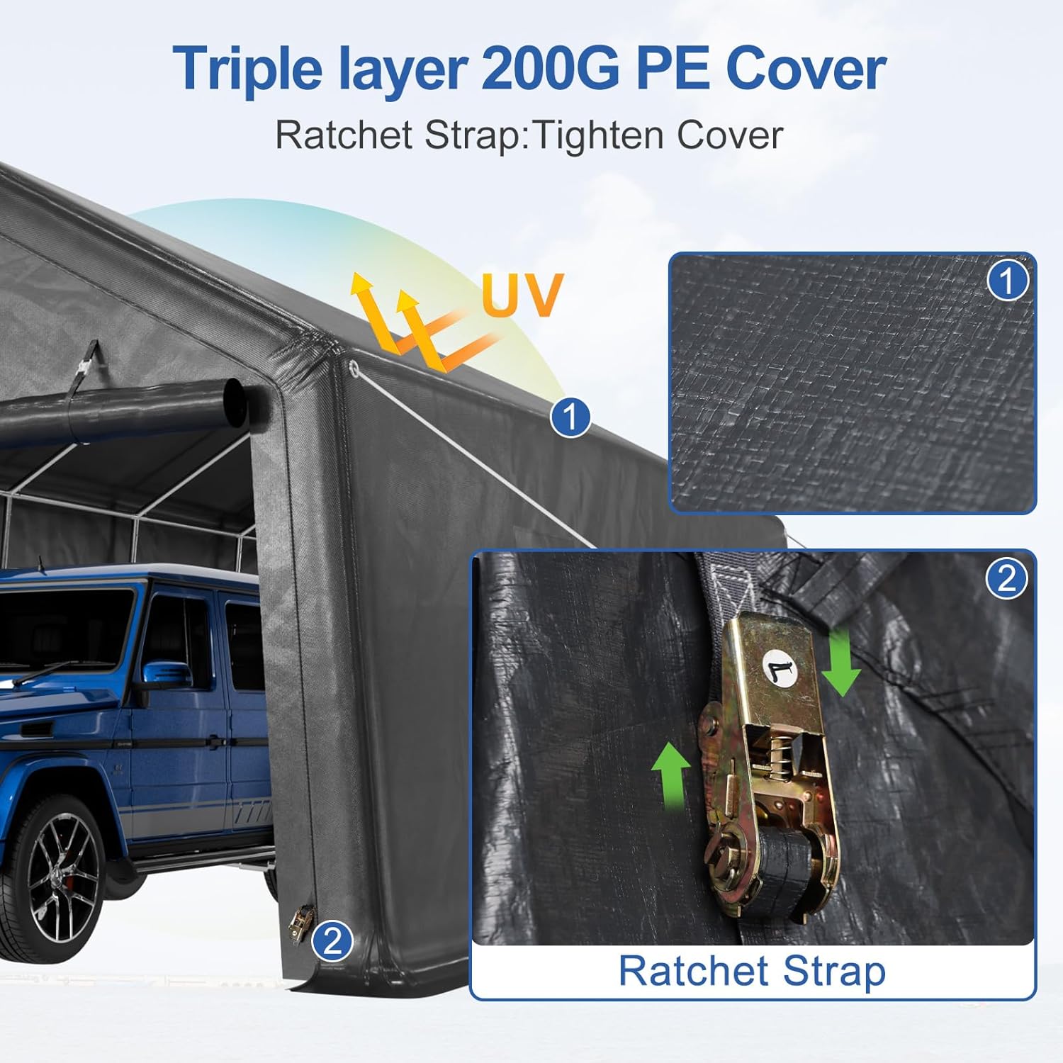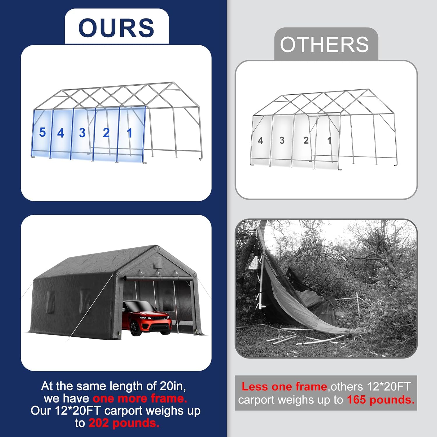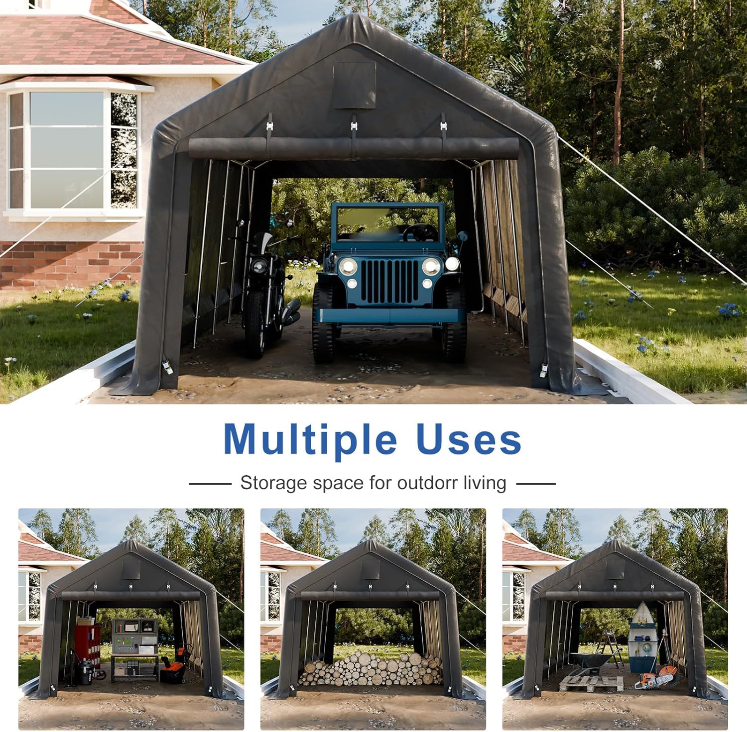 12x20ft Heavy Duty Carport, Car Port With All-Steel Metal Frame,Portable Garage For Automobile,Truck,Boat,Outdoor Storage Shelter,6*Ventilated Windows,4*Windproof Ropes,Anti-Snow Car Canopy