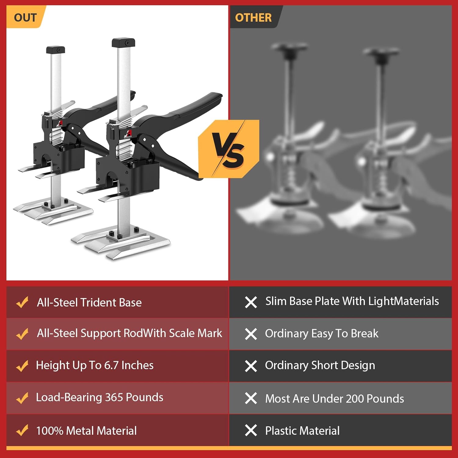 Labor Saving Handle 2 Pack,12 in Construction Jack,Multifunctional Furniture Lifter Jacks for Installing Cabinets and Wall Tile Height Adjuster Handheld Tool, Load 440LBSa