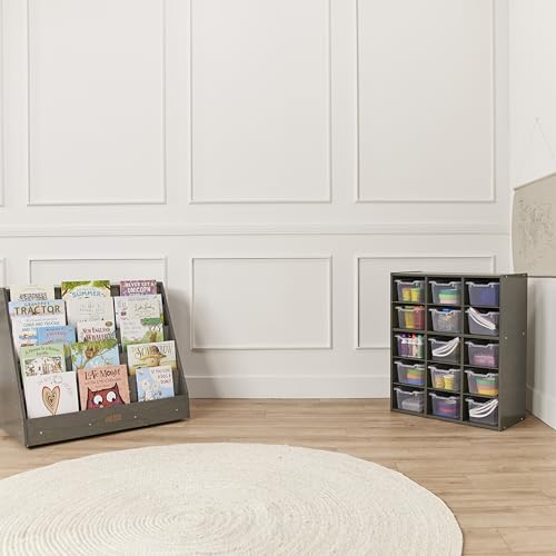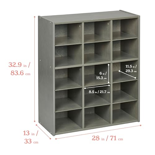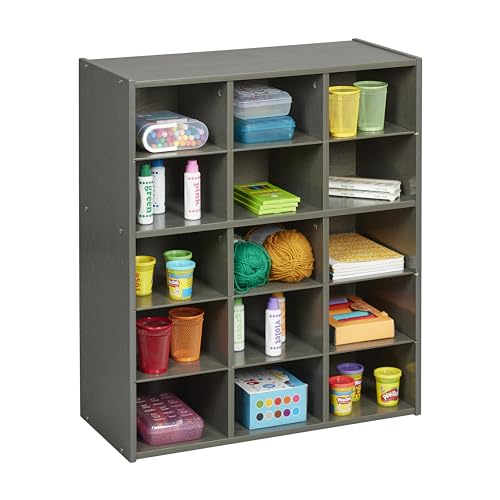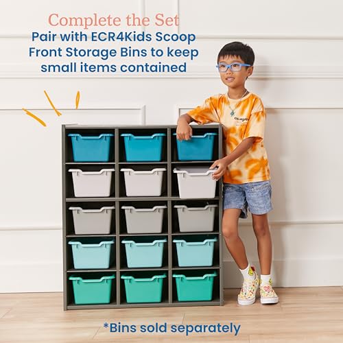 ECR4Kids Streamline 15 Cubby Tray Storage Cabinet, 5x3, Classroom Furniture, Grey Wash